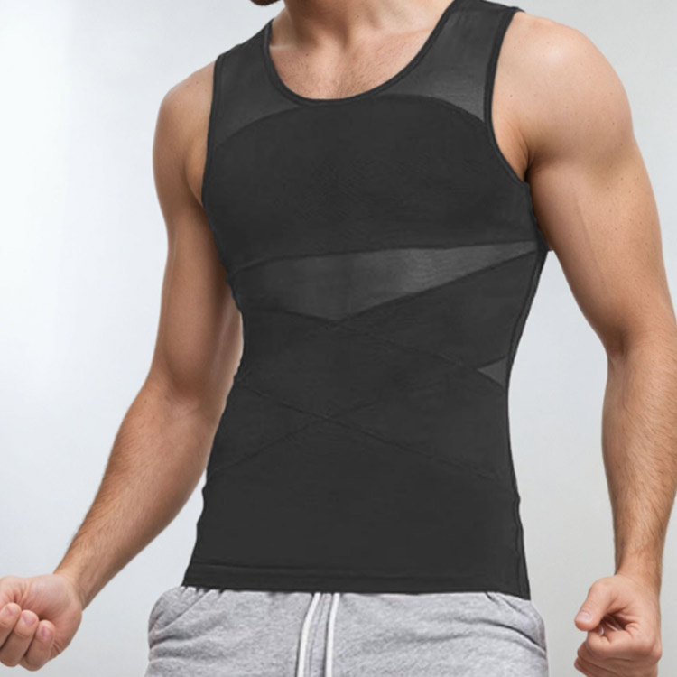加圧インナー 半袖 メンズ 加圧シャツ 強圧 垂れ胸補正 補正下着 乳首隠し 着圧 補正 加圧Tシャツ インナー 夏 高通気性のメッシュ構造で汗をかいてもベタつかない スタイルアップ