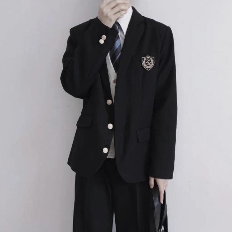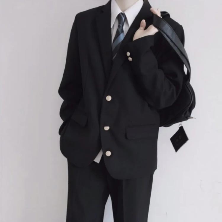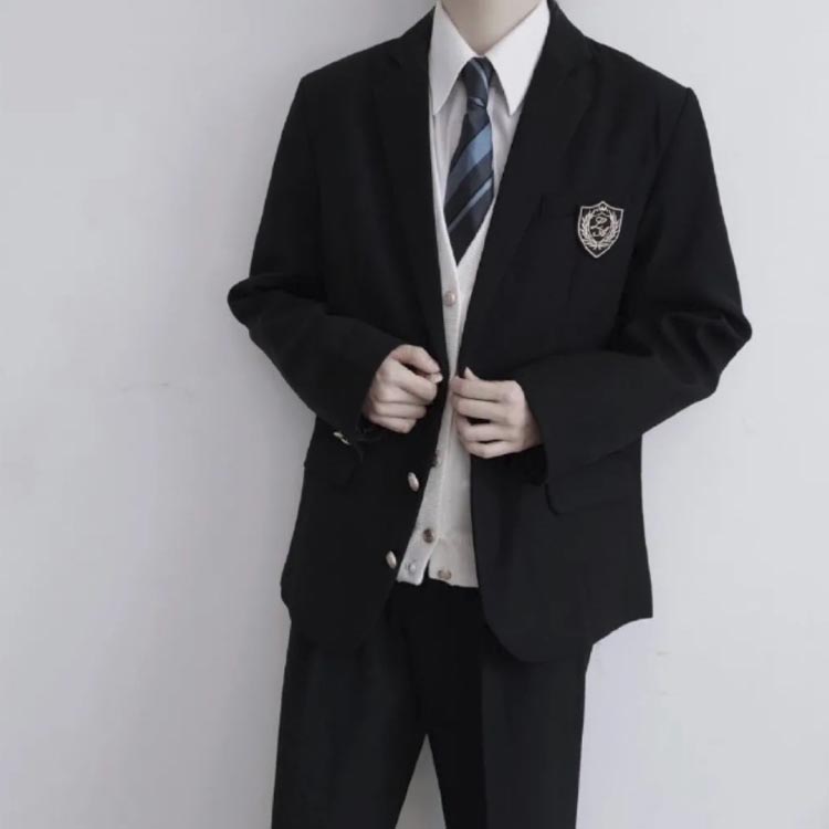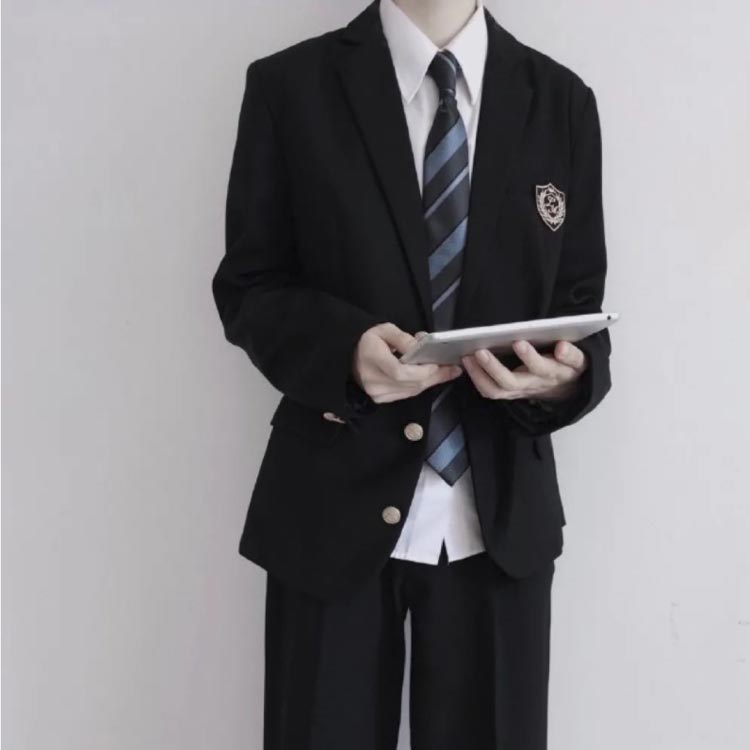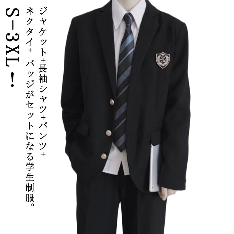 S-3XL!ジャケット+長袖シャツ+パンツ+ネクタイ+ バッジがセットになる学生制服。
