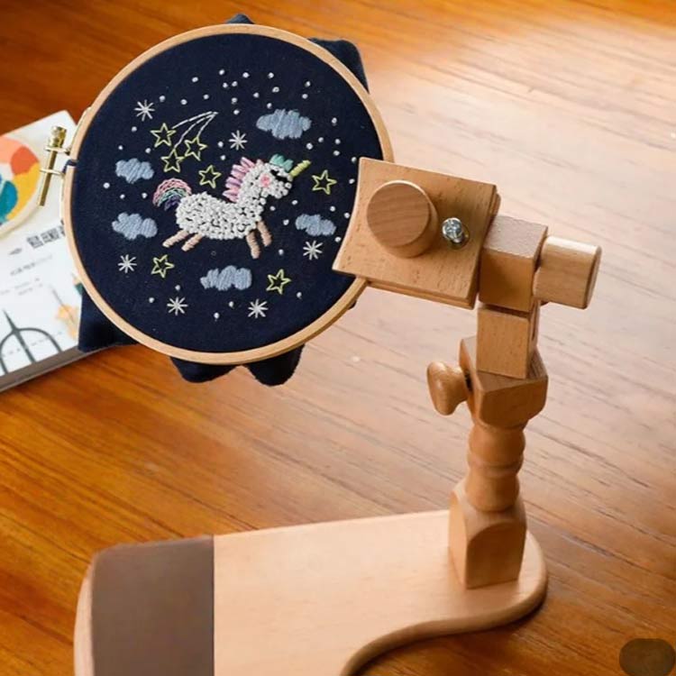 どこでも刺繍できる自立式刺繍スタンドホルダーは、スペースをとらず、自由に移動でき、テーブルや脚に置くことができます。