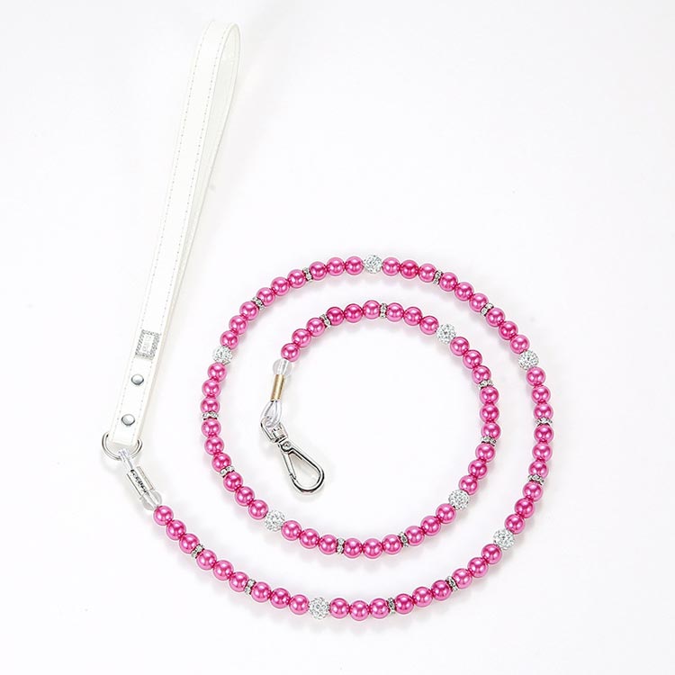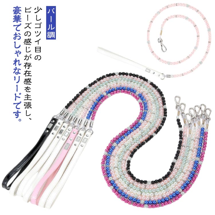 犬 リード おしゃれ かわいい おすすめ クリスタル パール調 パール ビーズ キラキラ セレブ 目立つ かっこいい スマート 注目 ゴージャス プレゼント ギフト 小型犬 人気 散歩 犬用品 中型犬