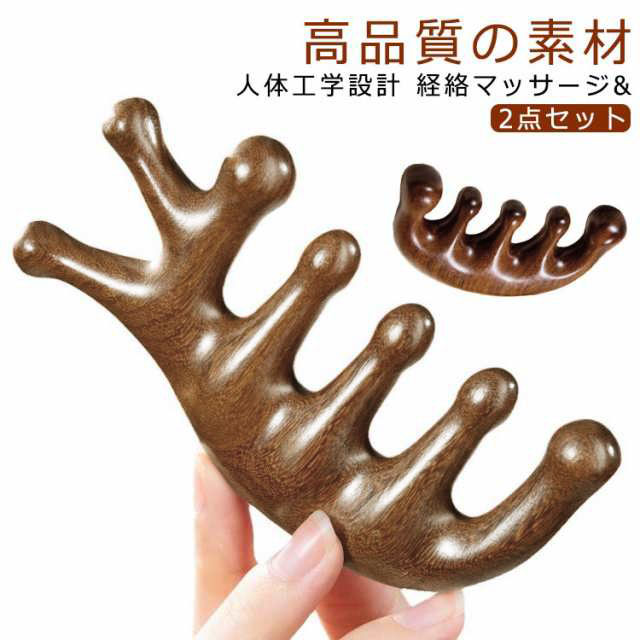 2点セット 木製 サンダルウッド 檀木櫛 ヘアケア 頭皮 天然木 頭皮ツボ押し グッズ ツボ押し棒 ヘアブラシコーム カッサ 経絡 多機能 ヘアブラシ 顔 鼻 静電気防止 男女兼用 首