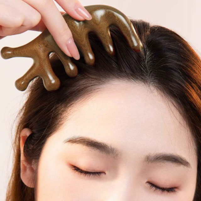 【経絡マッサージ&】360度の角がなく、手が快適になります。掻き出し櫛は滑らかで丸みがあり、頭皮や頭、指の血行を促進するために、掻き出しやマッサージに使用することができます。
