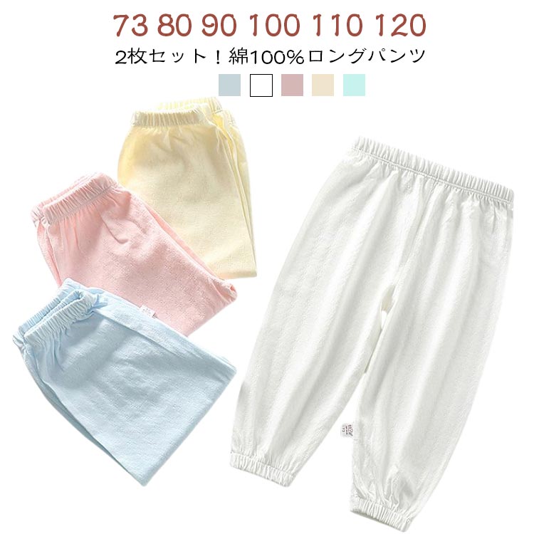 2枚セット ベビー 綿100%ロングパ キッズ ベビー マタニティ 新登場! ブルー2枚 ホワイト2枚 ピンク2枚 イエロー2枚 グリーン2枚 ブルー+ホワイト ホワイト+ピンク ピンク+イエロー イエロー+グリーン グリーン+ブルー 73 80 90 100 110 120