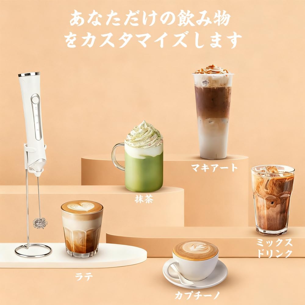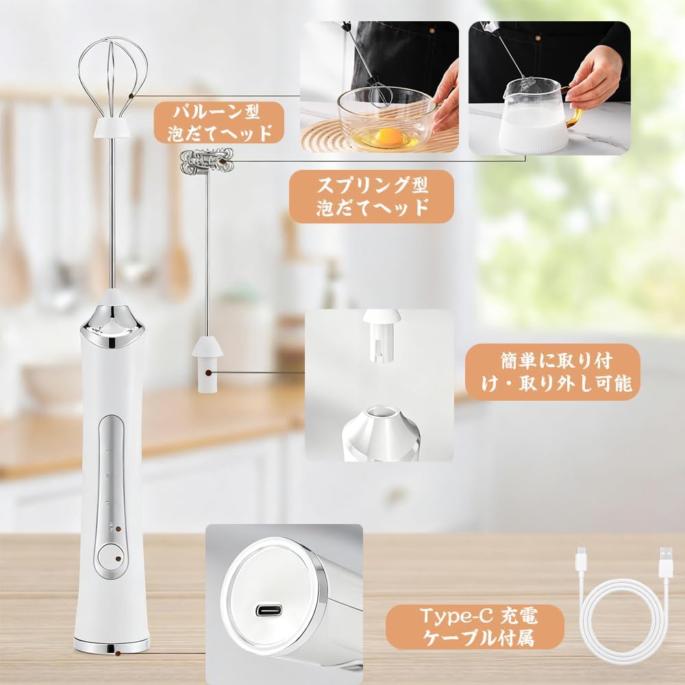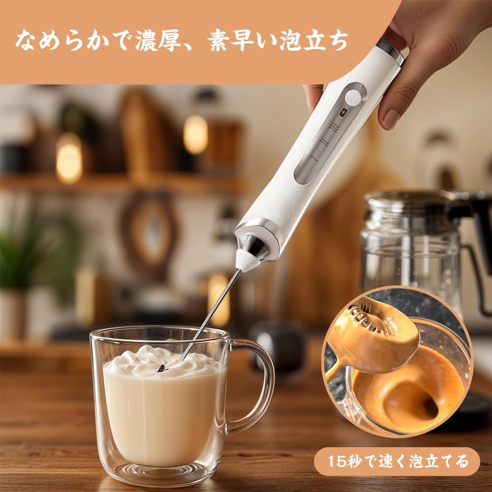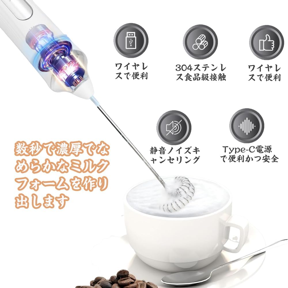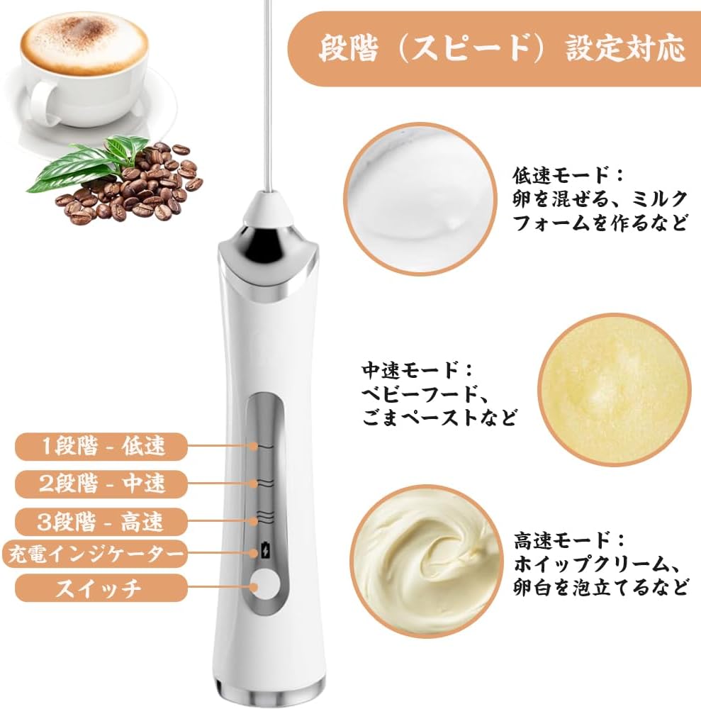 泡立て器 電動 コードレス 小 泡立てネットハンドミキサー 生クリーム 2way ミルクフォーマー USB充電式 3段階スビード調節 多機能 ミキサー 泡だて器 手持ち コンパクト ミルク泡立 泡立て