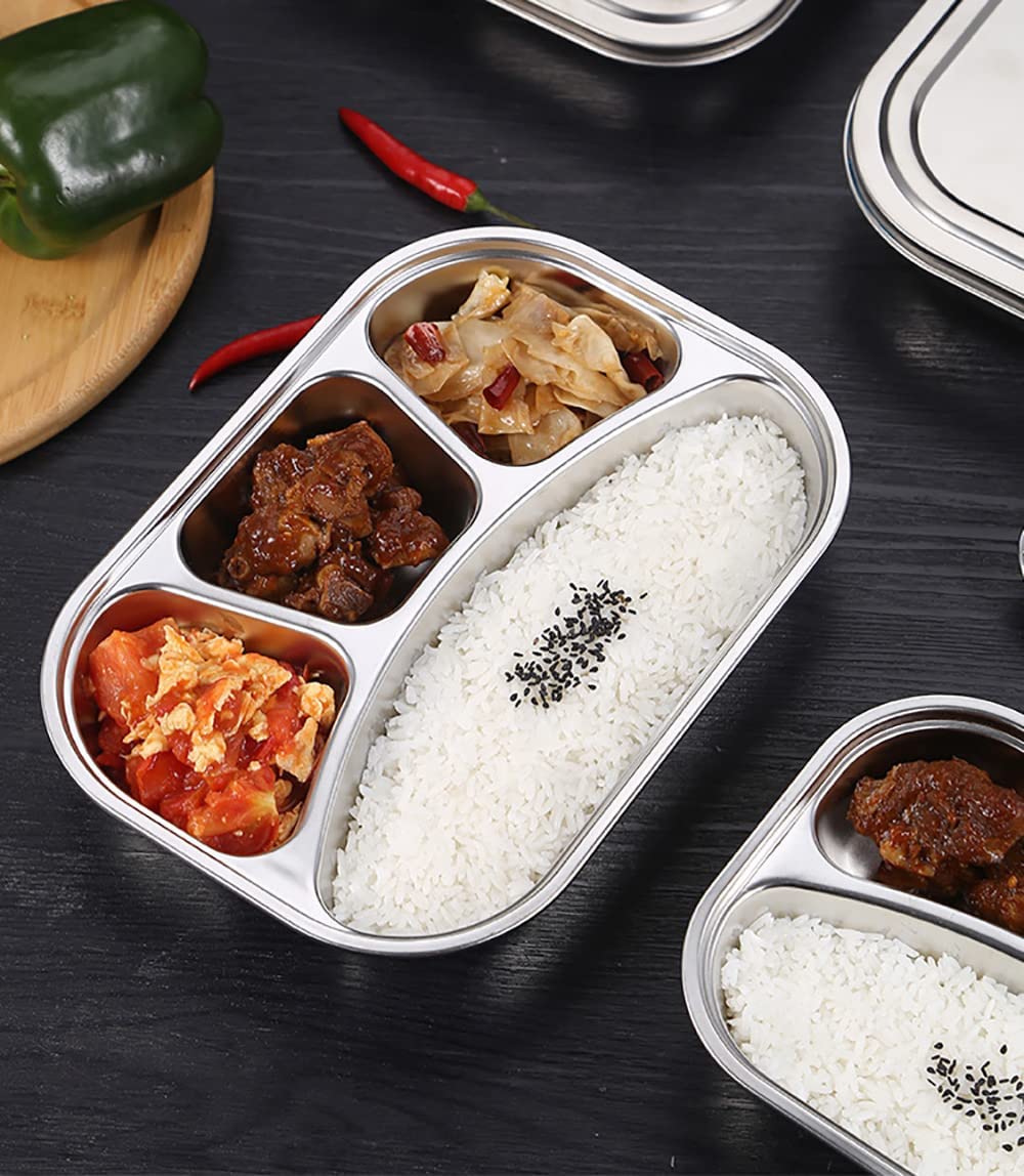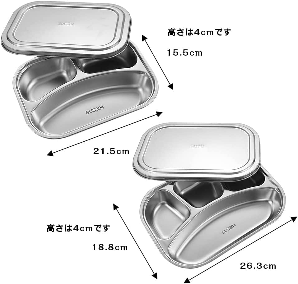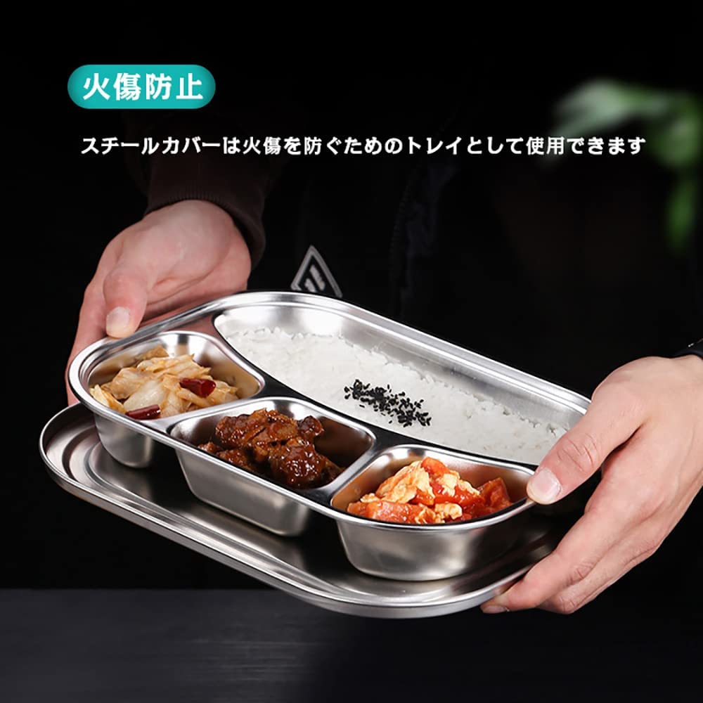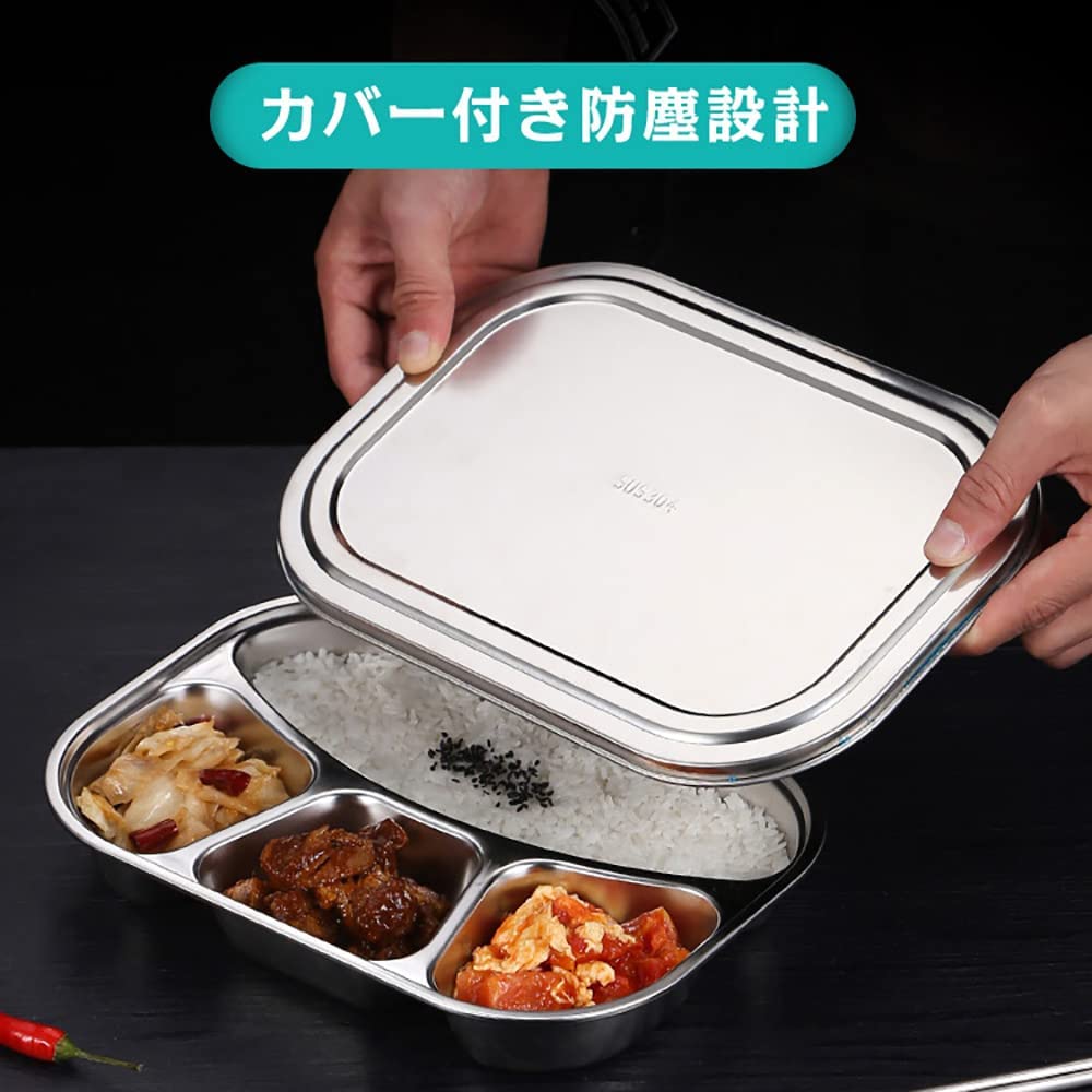 4つ仕切り ランチプレート ディナープレート ふた付き ステンレス 皿 おしゃれ 仕切り皿 分割 キャンプ用 バーベキュー用 父の日 コンテナフードプレート