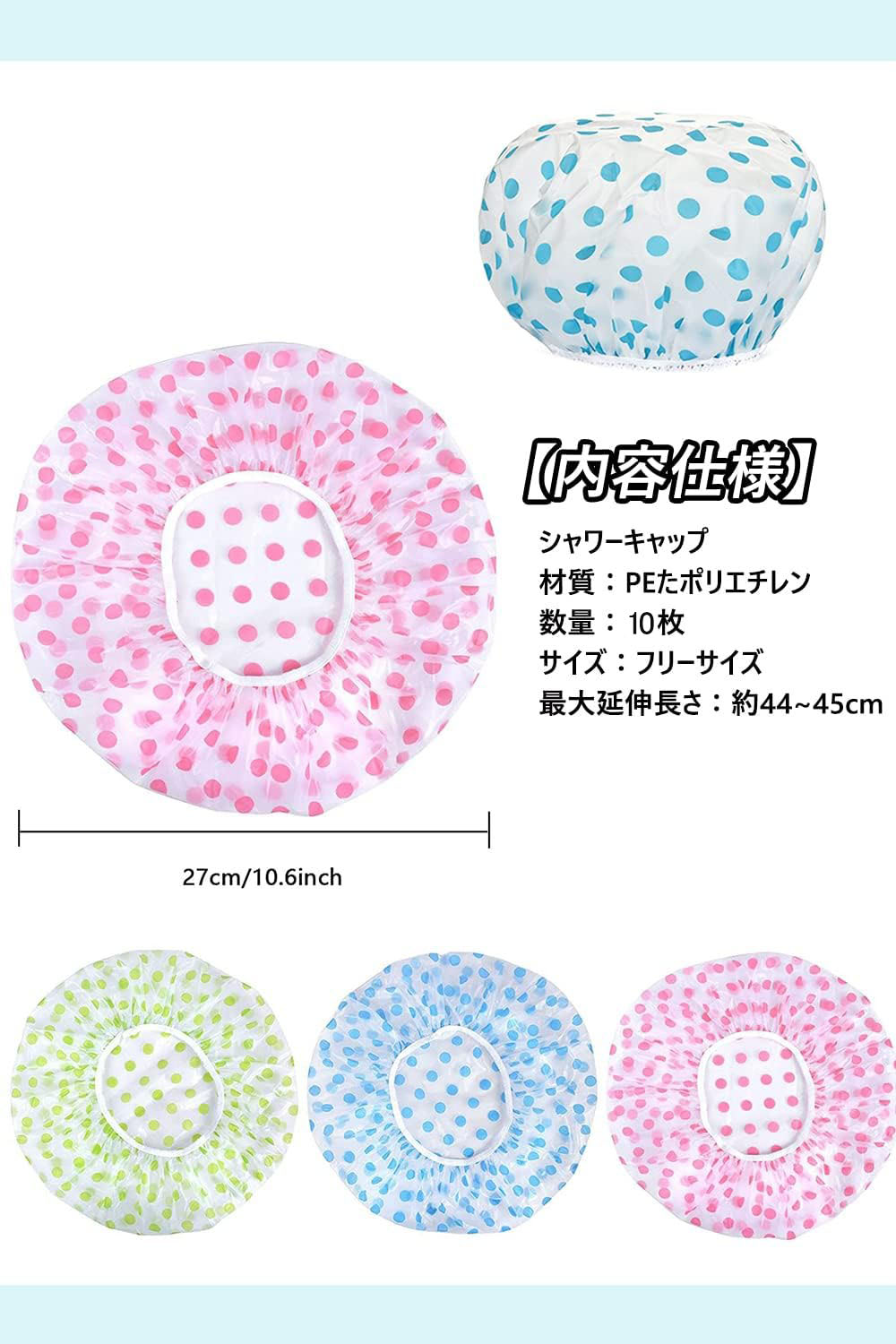可愛いシャワー防水キャップ10枚セット。髪を濡らしたくない・汚したくないときなどにご利用いただけるヘアキャップ。また、髪をスッポリ覆い、抜け毛の落下、フケ、ホコリなどの脱落も防ぎます。