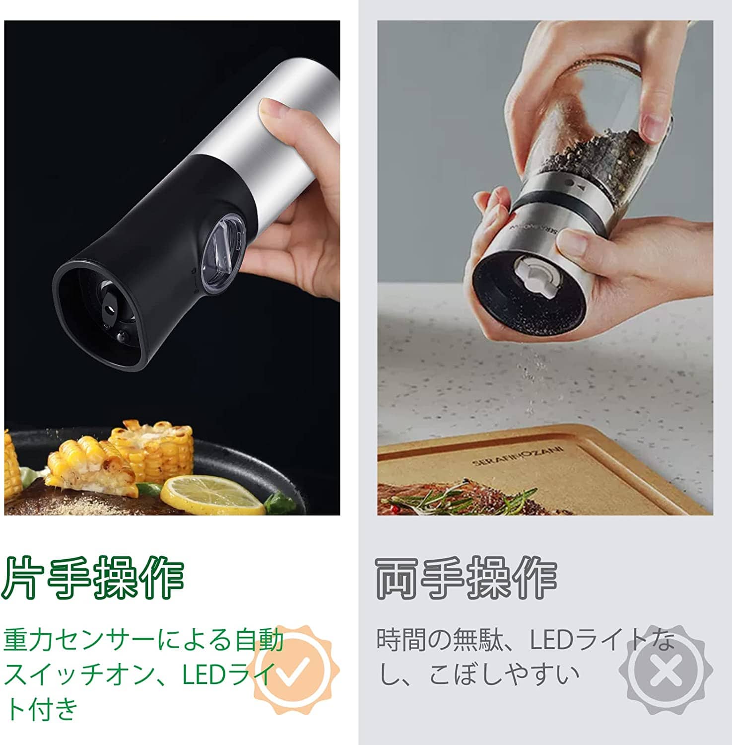 2本セット ペッパーミル 電動 重力感 調理 製菓道具 調理器具 ミル ペッパーミル 特集