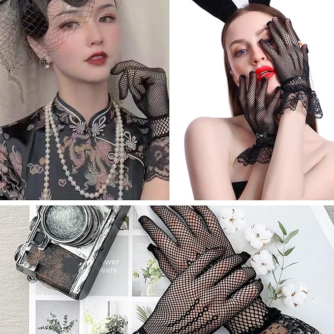 【おしゃれなデザイン】透け感があり大人っぽいデザインの手袋は実用性とおしゃれ度を兼ね備えます。エレガントで華やかな雰囲気を演出します。