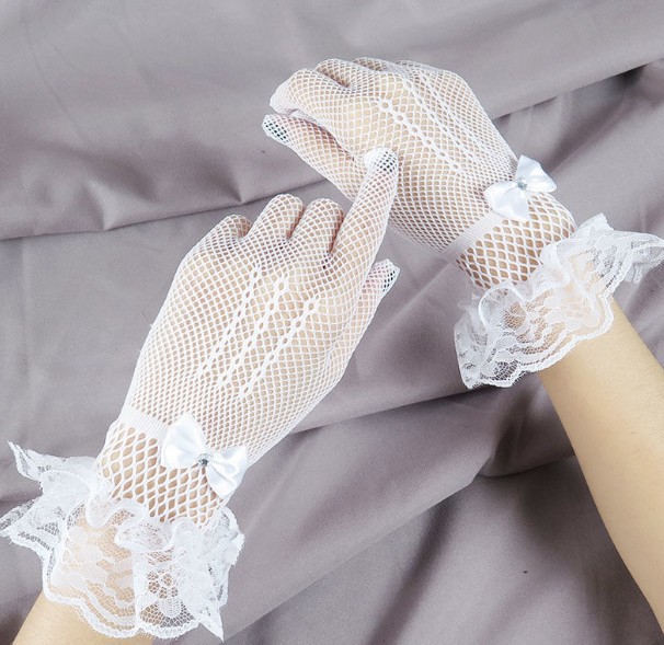 手袋 レディース レース メッシュ グローブ リボン ネット 薄手 ショート レース手袋 紫外線 日焼け防止 uvカット 夏 結婚式 成人式 運転 女性用