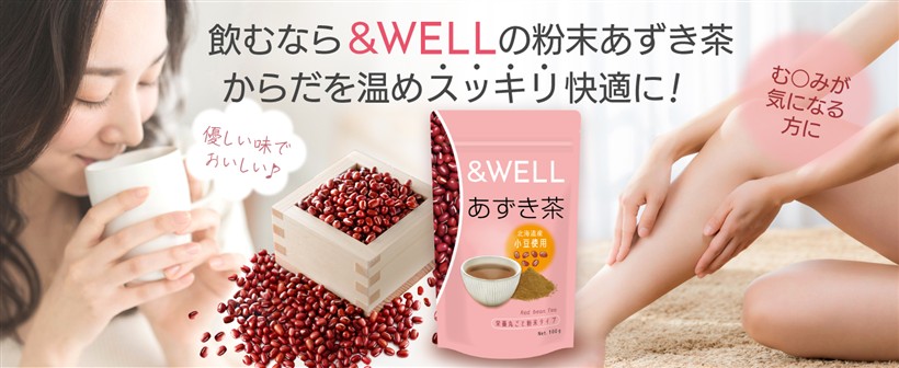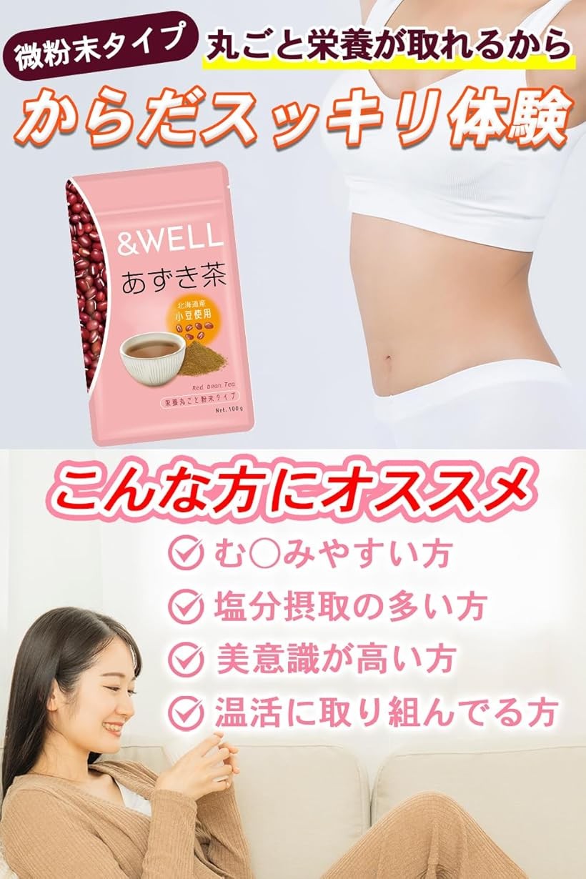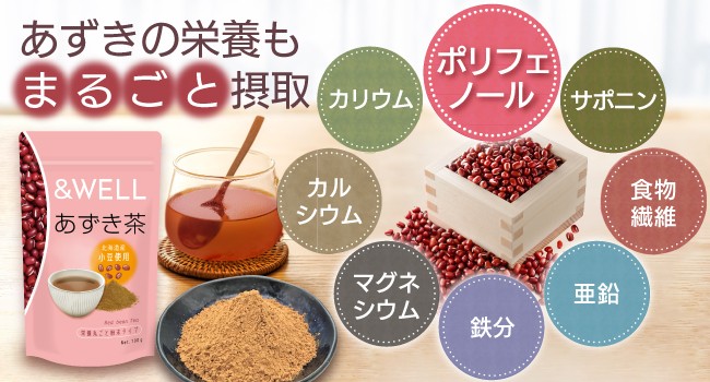 アンドウェル あずき茶 小豆茶 北海道産100% 栄養丸ごと粉末 100杯分 パウダー ノンカフェイン ポリフェノール カリウム 含有 アレンジいろいろ スッキリ快適生活 食物繊維
