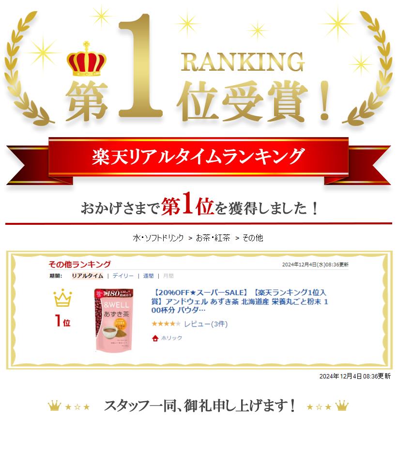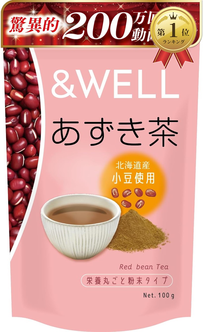 アンドウェル あずき茶 小豆茶 北海道産100% 栄養丸ごと粉末 100杯分 パウダー ノンカフェイン ポリフェノール カリウム 食物繊維 含有 アレンジいろいろ スッキリ快適生活