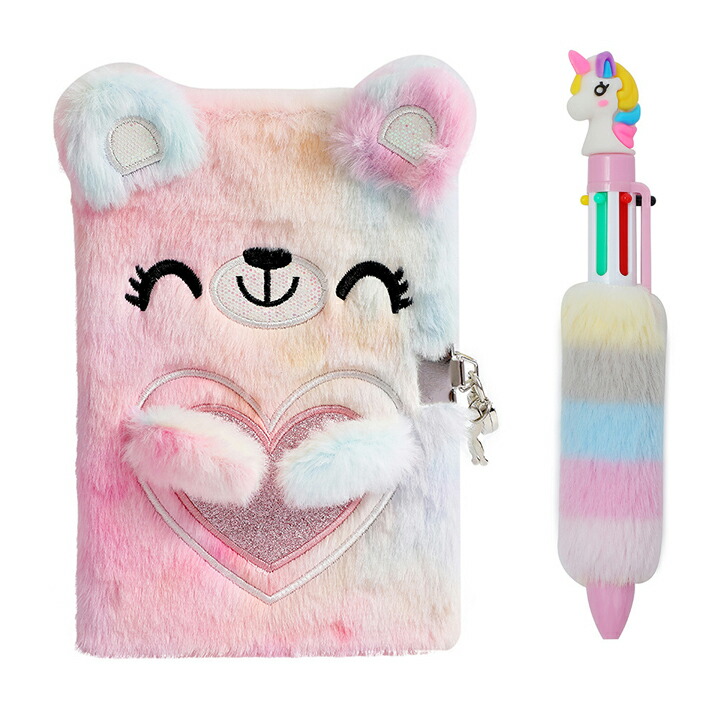小熊 日記帳ボールペンセット A5 鍵 マルチカラー パープル