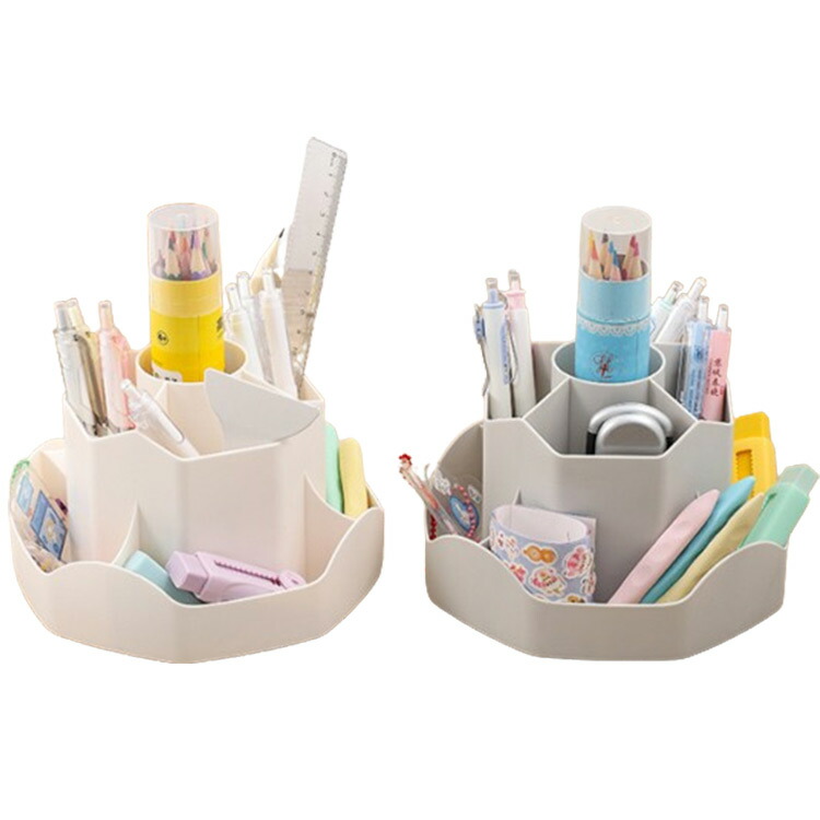 ペンホルダー 回転ペンスタンド 回る 文房具 事務用品 机上収納 整理用品 その他 豊富 ベージュ2個 グレー2個 ベージュ+グレー