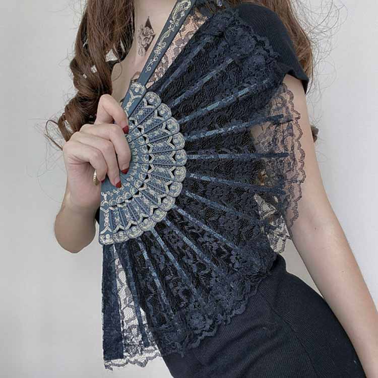 上品な花柄レースの扇子です。和服洋装にも似合うお洒落アイテムです♪バレエやダンスの練習用エレガントなレースセンスです♪