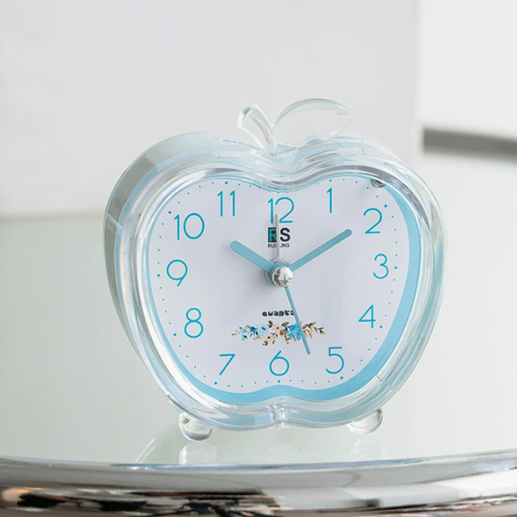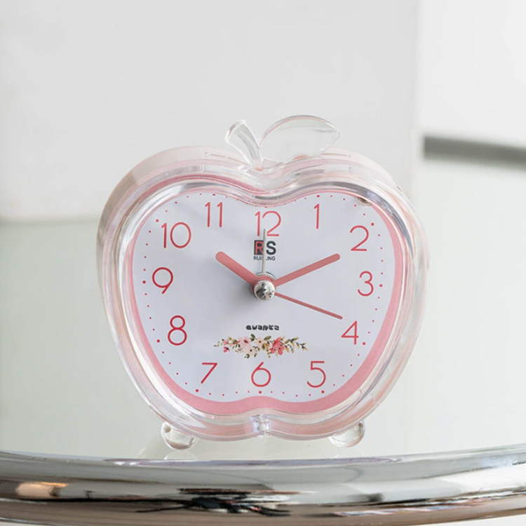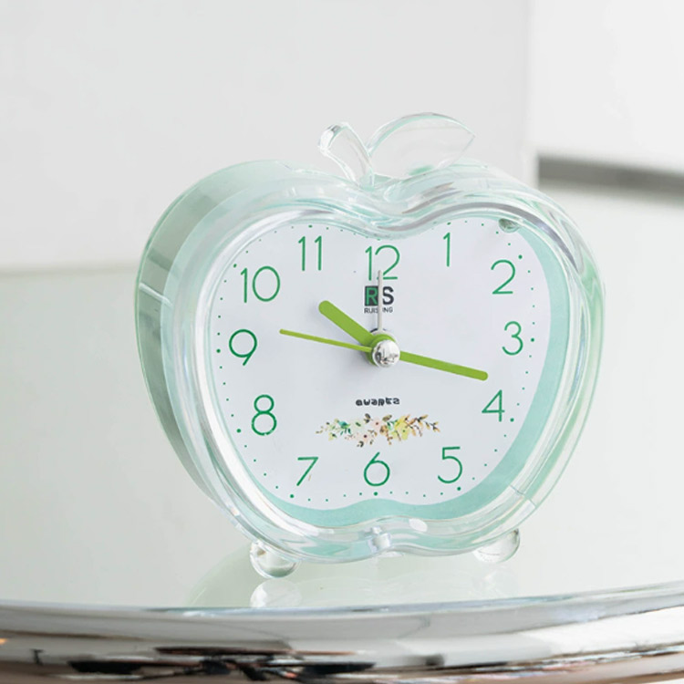 ライト付き 目覚まし時計 置き時計 卓上 アラーム 静音 小型 アナログ ミニ 静か 常夜灯 ライト機能 電池式 おしゃれ リンゴ かわいい リビング 寝室 小さい ナイトライト テーブルクロッ 時計