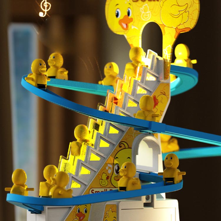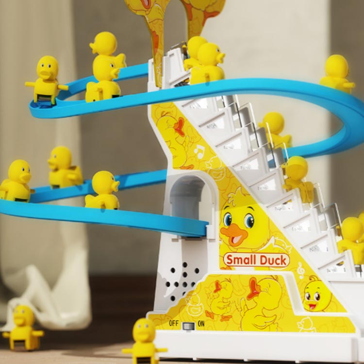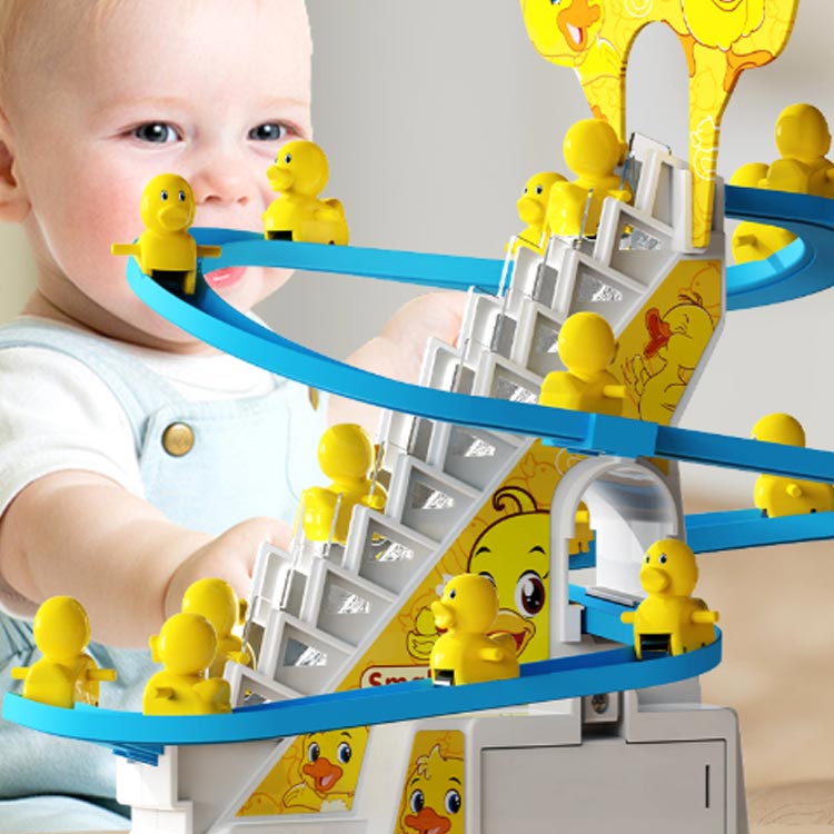 【おもちゃセット】階段を上るおもちゃにはかわいい小さなアヒルが付属し、プラグを差し込んで使用するためのUSB充電ケーブルも付属しています。おもちゃはプラグを差し込んだときにのみ起動します。
