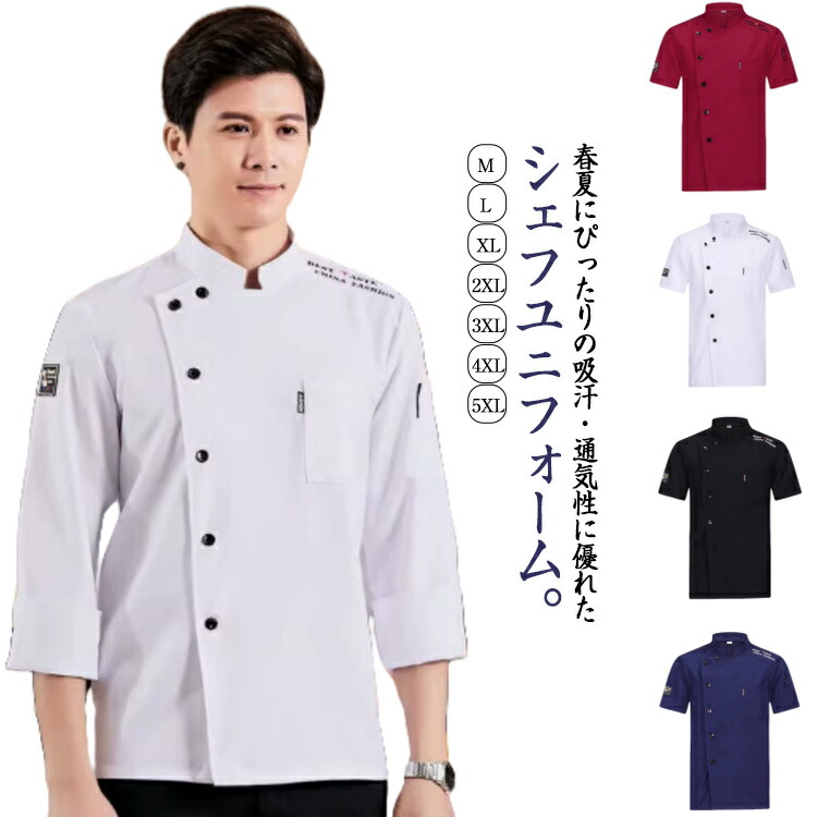飲食店用 飲食店 半袖 コックシャツ ホワイト(長袖) ブラック(長袖) ブルー(長袖) レッド(長袖) ホワイト(半袖) ブラック(半袖) ブルー(半袖) レッド(半袖) M L XL 2XL 3XL 4XL 5XL