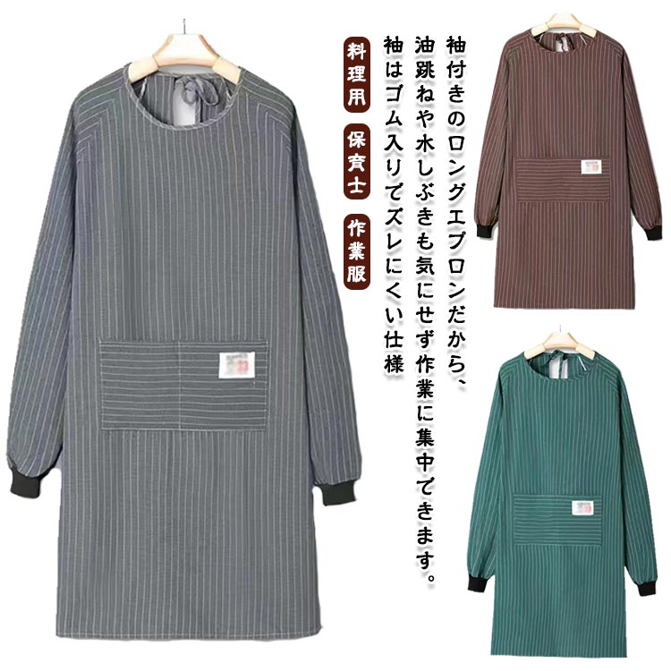 レディース 割烹着 韓国風 シンプル 長袖エプロン 男女兼用 エプロン おしゃれ キッチン スモック 保育士 袖付きエプロン 料理用 かっぽう着 作業服 家庭用 母の日 プレゼ ロングエプロン