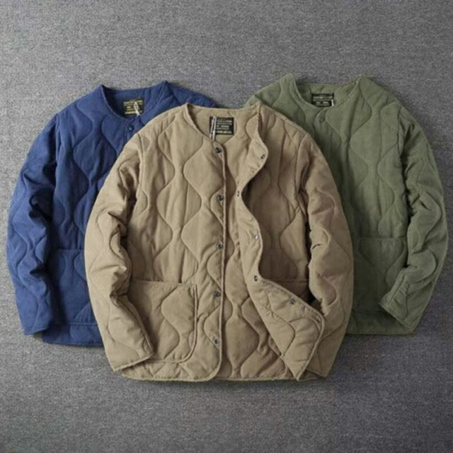 ノーカラーキルティングジャケット ブル メンズファッション 新作 ベージュ カーキグリーン ネイビー M L XL 2XL 3XL
