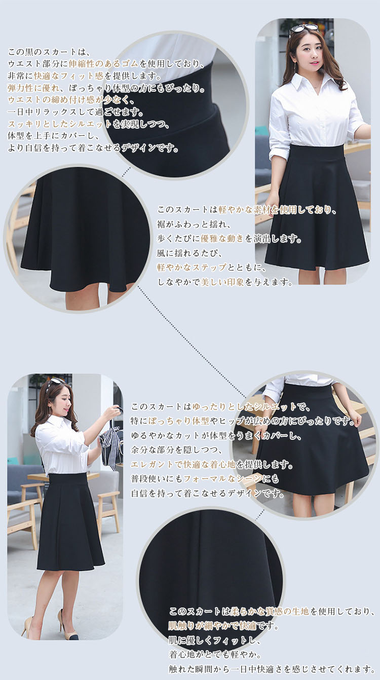 フレアスカート レディース スカート レディースファッション 続々登場 M L XL(LL) 2XL(3L) 3XL(4L) 4XL(5L) 5XL(6L) 黒スカート春夏インナーパンツ付き 黒スカート秋冬インナーパンツ付き 黒スカート春夏ポケット付き 黒スカート秋冬ポケット付き