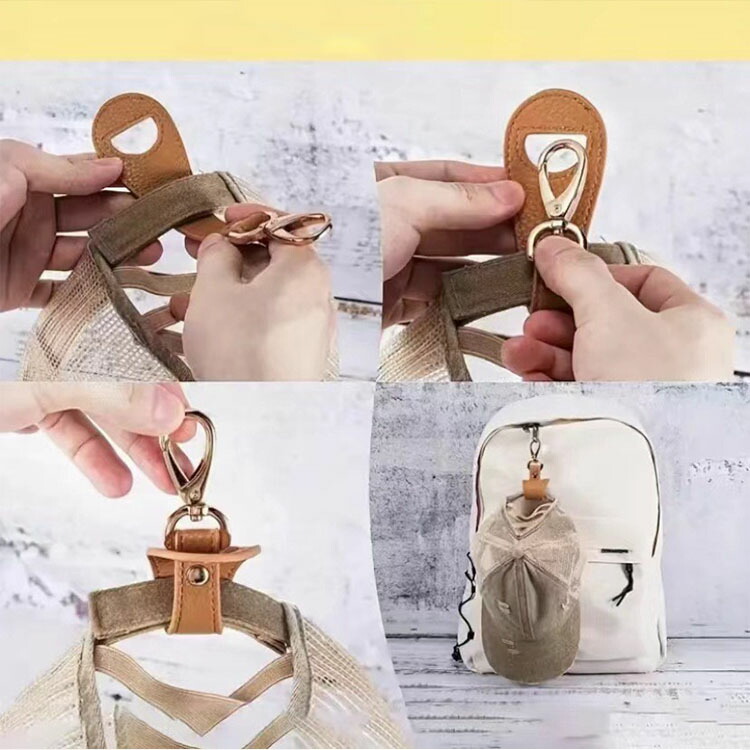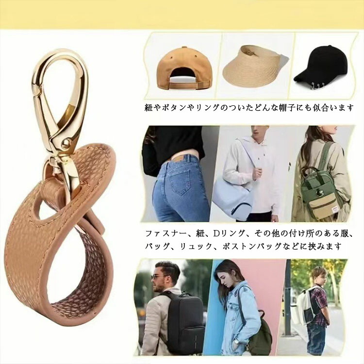 帽子 ホルダー 旅行用 帽子クリップ 鞄 おしゃれ 男女兼用 子供用 キャップホルダー 紛失防止 ブラックレザー お洒落 お出掛け 高校 学生 大学 母の日 誕生日 プレゼント 記念日 ギ 人気