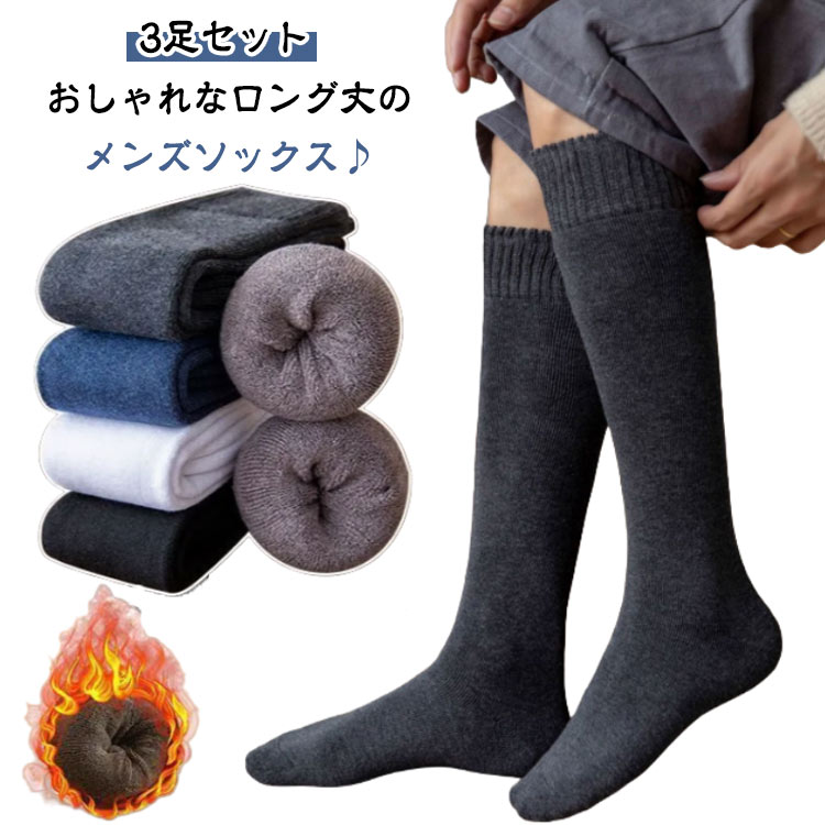 ひざ下 冷え対策 メンズ 3足セット ビジネス 靴下 寒さ対策 スクール ハイソックス 冬 社会人 中学生 厚手 高校生 ソックス ロング丈 あったか 無地 紳士 防寒 通学 大人 男性 通勤