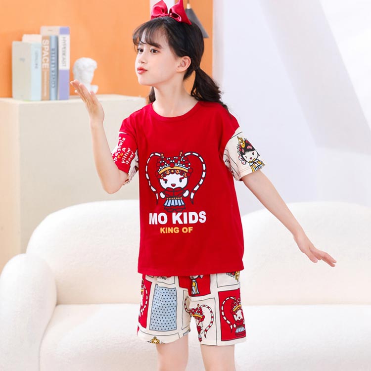 通気性に優れた綿素材を使用した、肌にやさしく快適なキッズ用ルームウェアです。薄手でさらっとした着心地なので、蒸し暑い夜もぐっすり快眠。かわいいデザインのTシャツとショートパンツのセットアップで、寝巻きとしてはもちろん、部屋着やちょっとしたお出かけにもおすすめ!