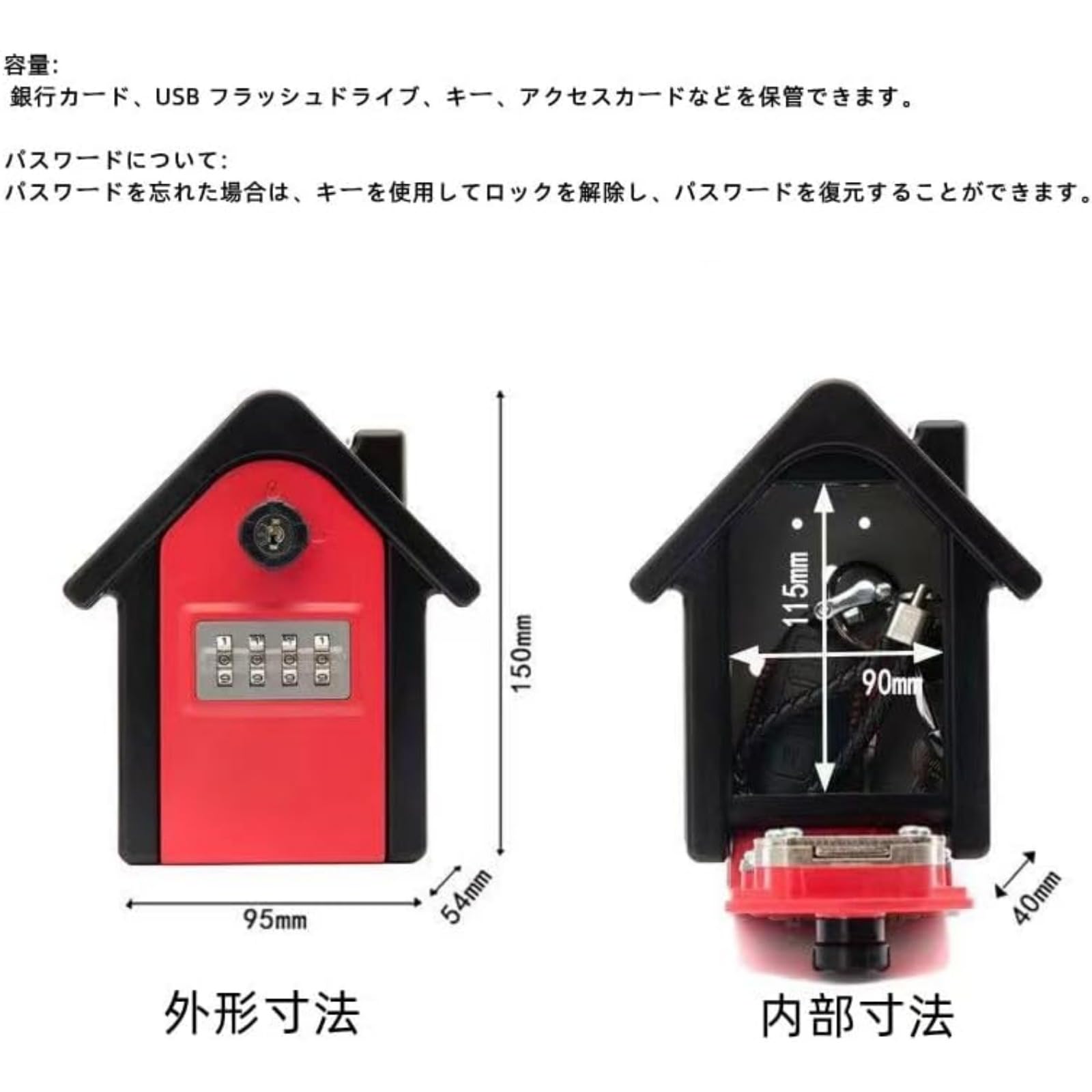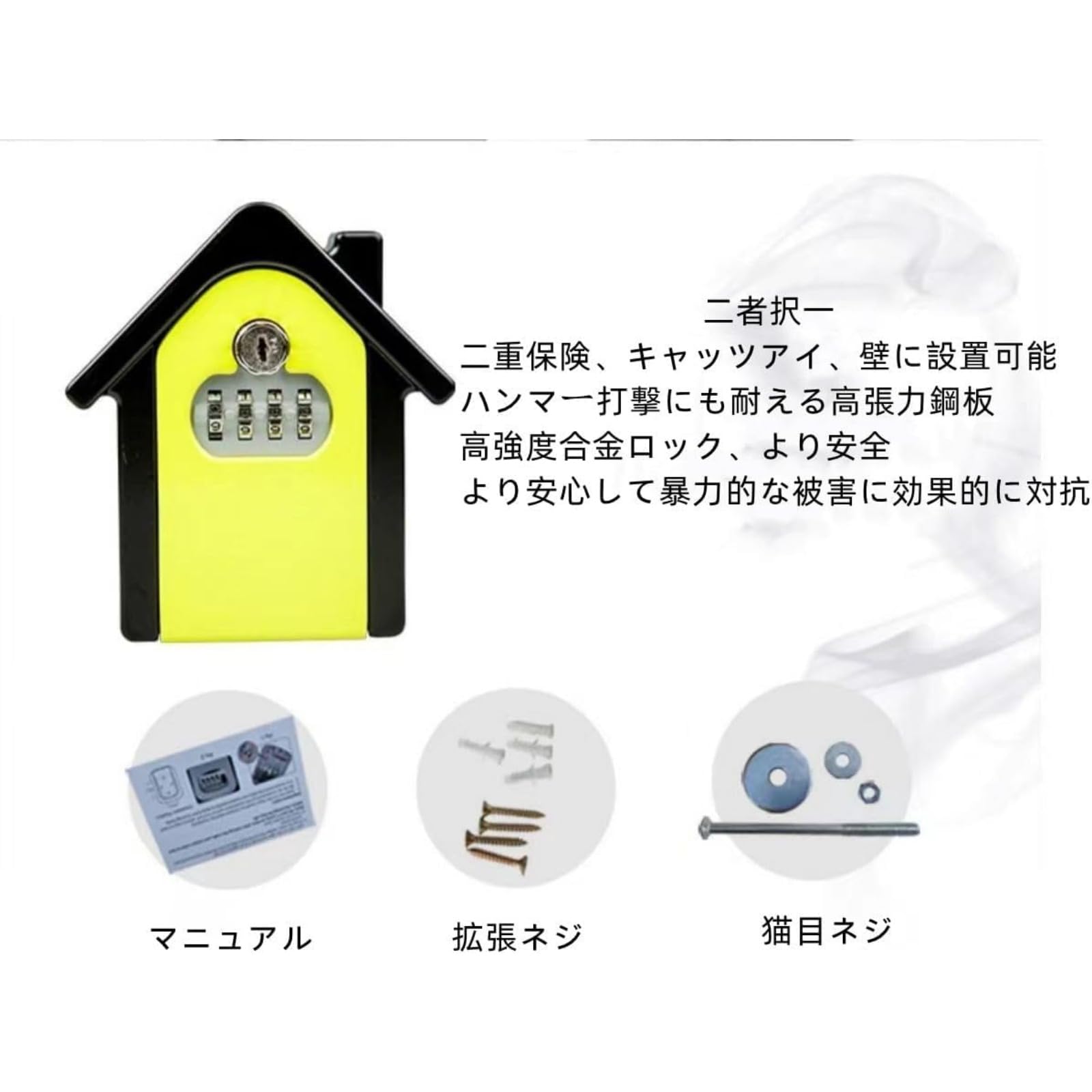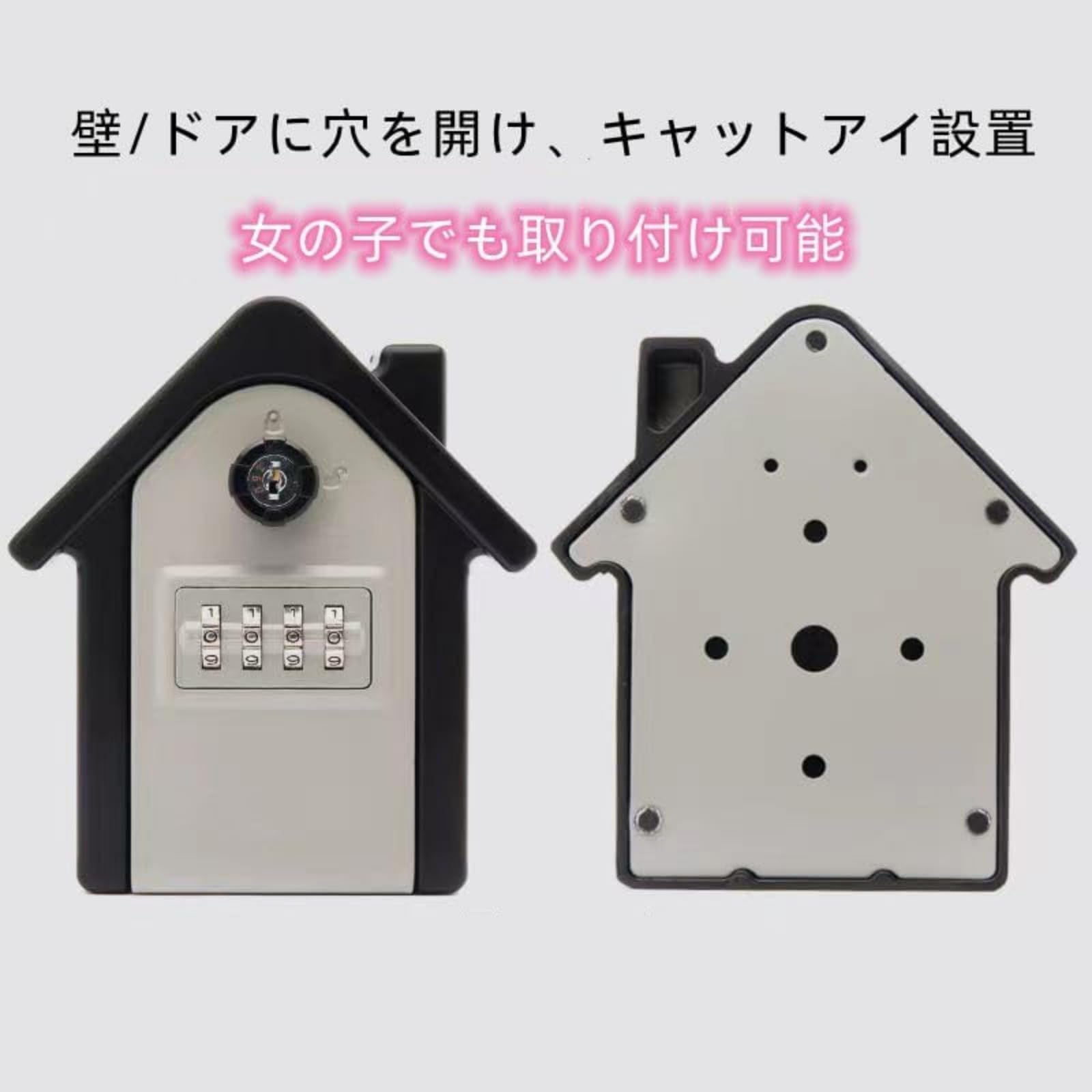 キーボックス 壁掛け 4桁暗証番号 ダイヤルアップ 非常解錠キー付き 鍵共有 安心 小さな家の形 配送