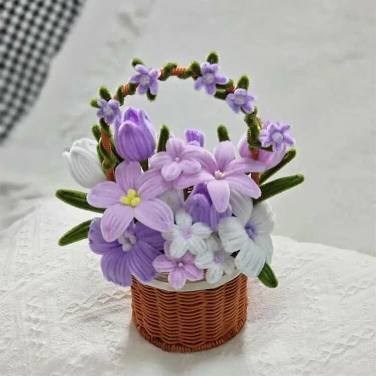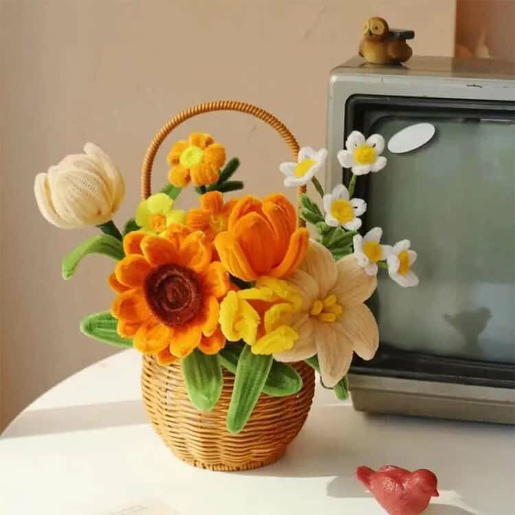 モールフラワー 手作りキット バスケット付 ユリ ひまわり フリージア おしゃれ ナチュラル 枯れない 花 かご付 モールアート 造花 DIY ハンドメイド 贈り物 プレゼント 母の日 誕生日 ギフト