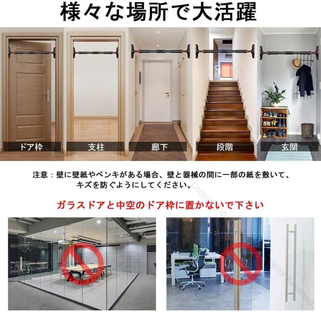 【材質】スチール管 【サイズ】65-100cm90-130cm 100-150cm 140-180cm 【耐荷重】200kg 懸垂トレーニングの効果: 筋力アップ。懸垂は複数の筋肉を使うため、全体的な筋力アップが見込めます。 複数の筋肉を鍛えられるということは、短期間で体全体の筋肉に効果があらわれます。 基礎代謝が上がる。懸垂トレーニングによって筋肉量を増やし、体の代謝が良くなります。 基礎代謝が上がれば、太りにくく、痩せやすい“理想的”な身体がGetできます。 姿勢が良くなる。 懸垂は、姿勢のキープに欠かせない背中の筋肉と腹筋を同時に鍛えられるため、より効果的に正しい姿勢作りを行えます。 肩こりの改善。肩こりや腰痛がひどい男性は、少しずつ筋肉をつけ、全身を健康な状態にしてみてください。 ボディーバランスが整う。