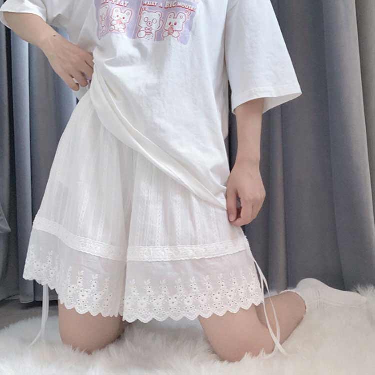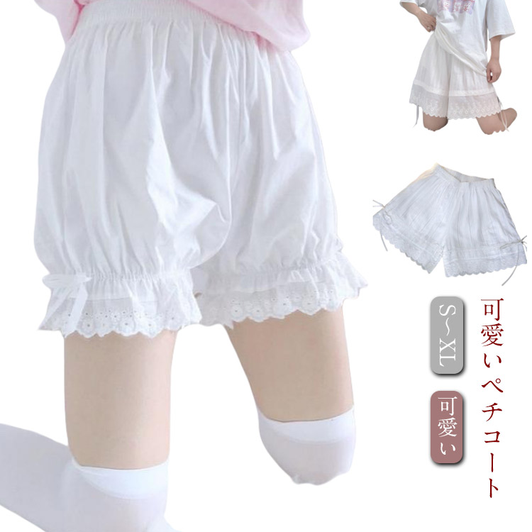 下着 コスプレ衣装 フリル レース ペチコート レディース かぼちゃパンツ ボトムス おしゃれ ショート ペチパンツ リボン ウエストゴム ロリータ 可愛い 肌着 コス 見せパン
