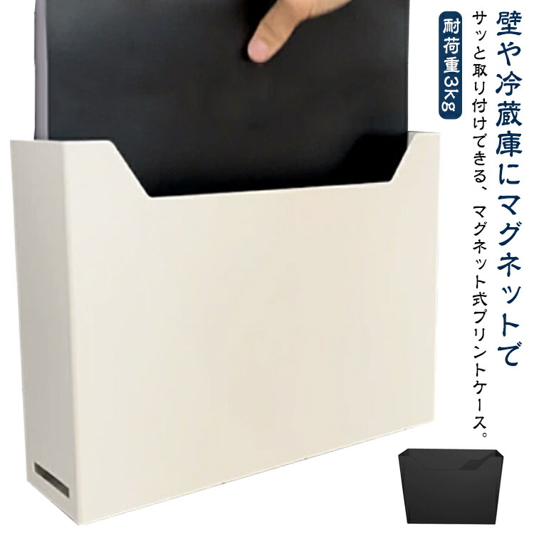 マグネット プリントケース A4 ファイルボックス 冷蔵庫横 壁面 収納ポケット ペーパーポケット ウォールポケット レターケース プリント 収納 ファイルケース ホワイト ブラック 磁石 スチール