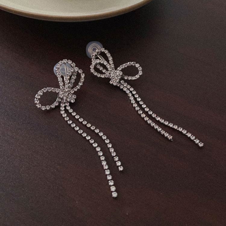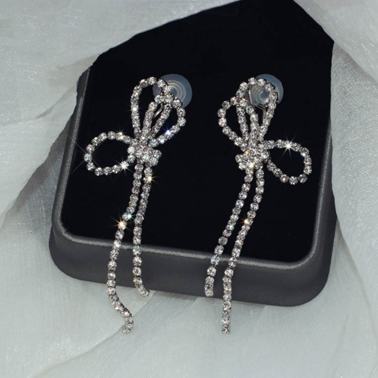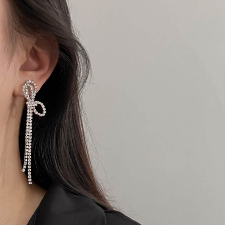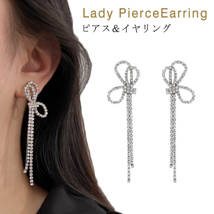 痛くない ピアス イヤリング ロングピアス ノンホール 揺れるピアス レディース ビジュー イヤーカフ アクセサリー リボン
