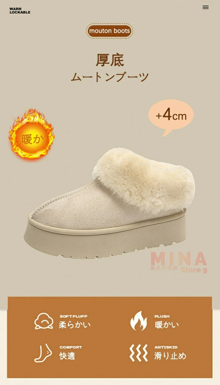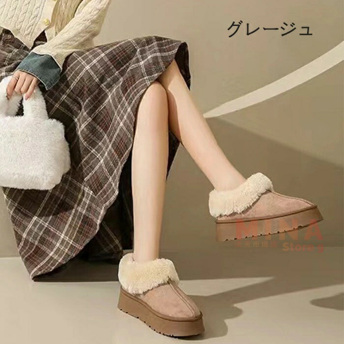 ムートンブーツ 厚底 防寒靴 レディー 靴 新作 グレージュ ブラック ブラウン ベージュ 35(内寸22.5cm) 36(内寸23cm) 37(内寸23.5cm) 38(内寸24cm) 39(内寸24.5cm) 40(内寸25cm)