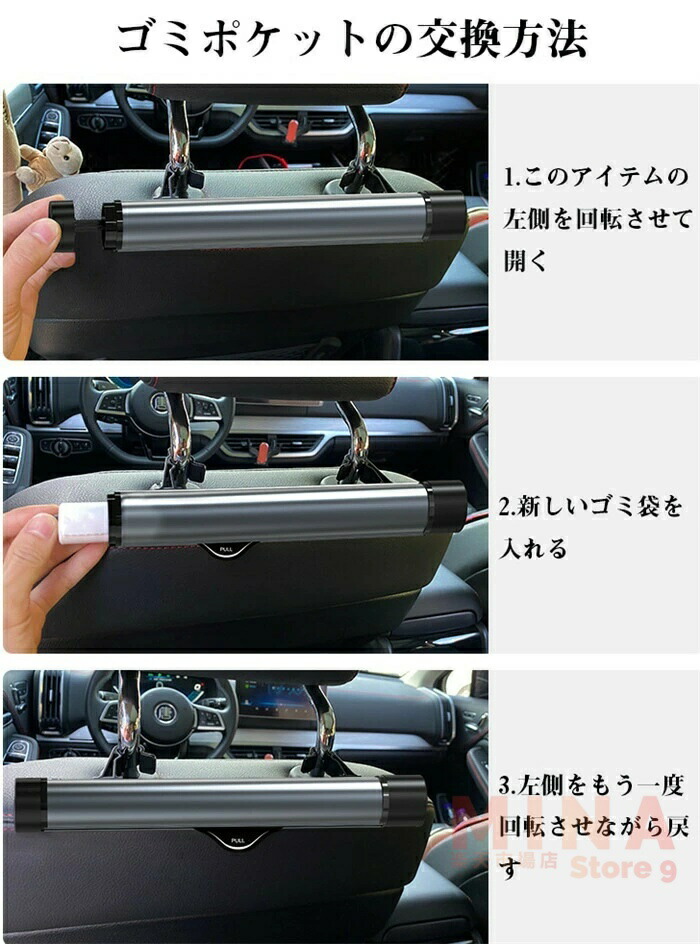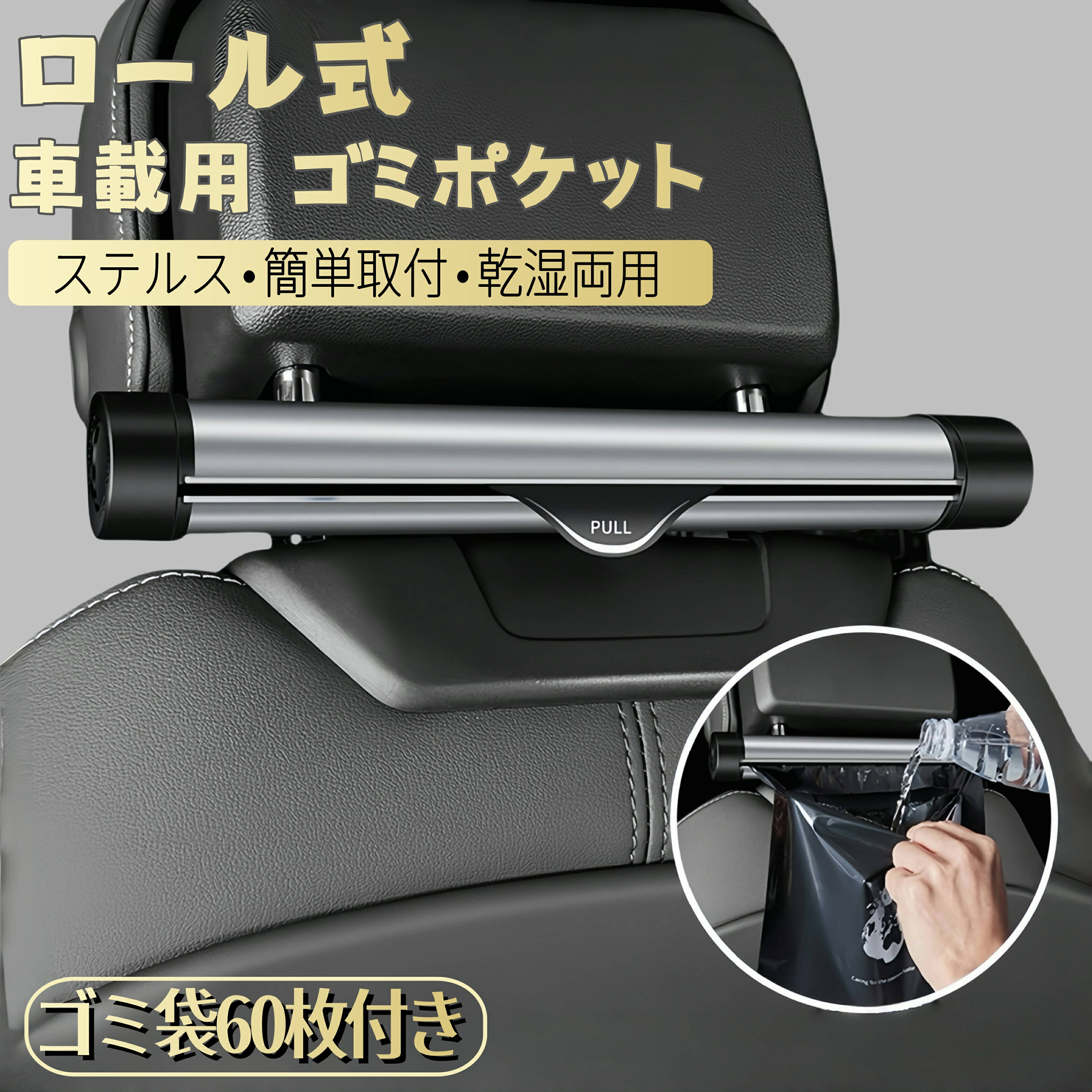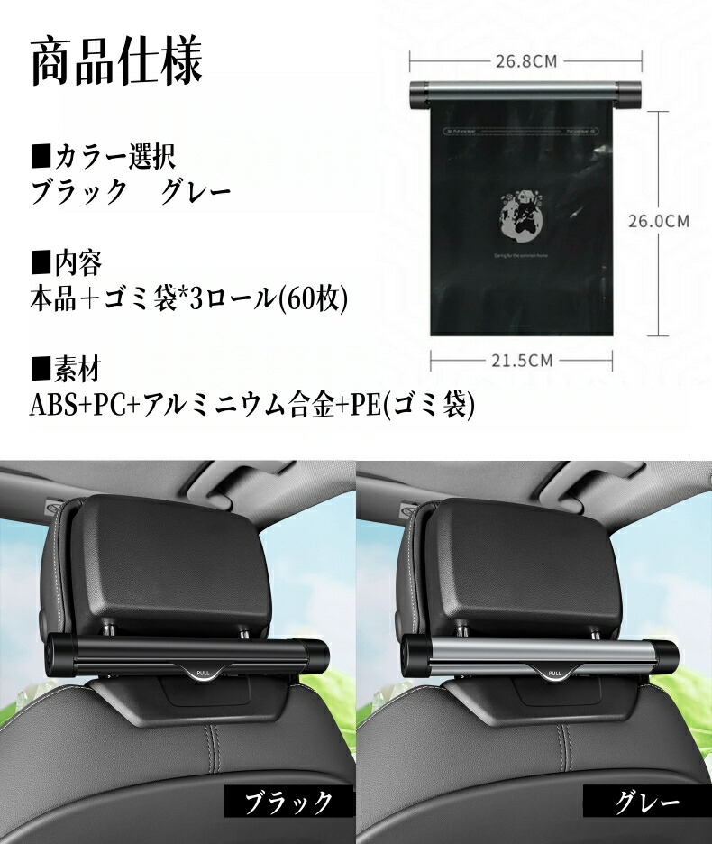 正品販売 ゴミポケット 車載 ゴミ袋 本体(黒色)にゴミ袋3ロール付属 本体(灰色)にゴミ袋3ロール付属 ゴミ袋単品(3ロール-60枚)