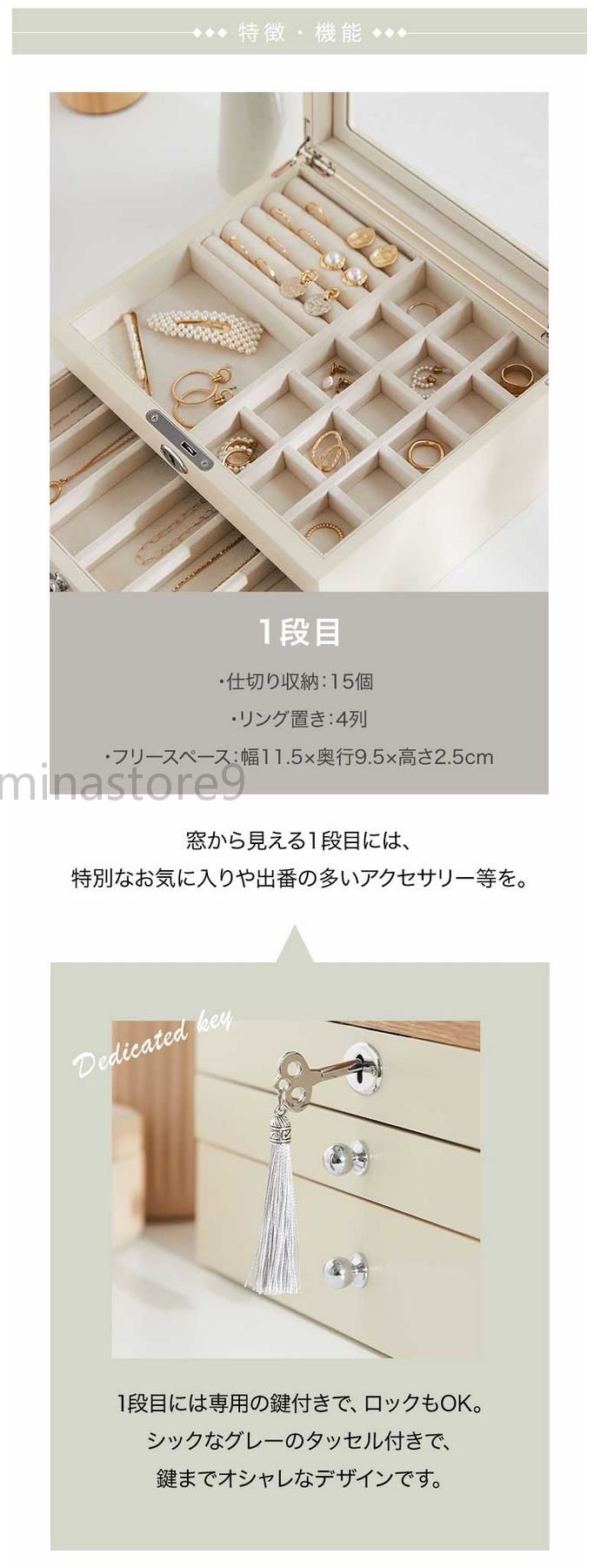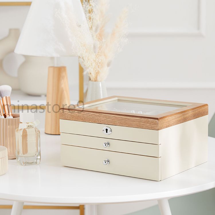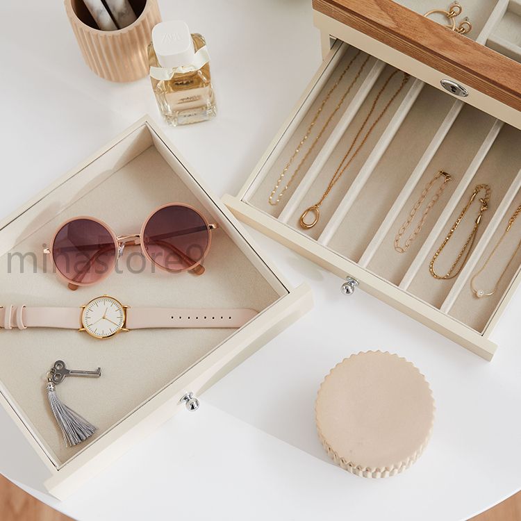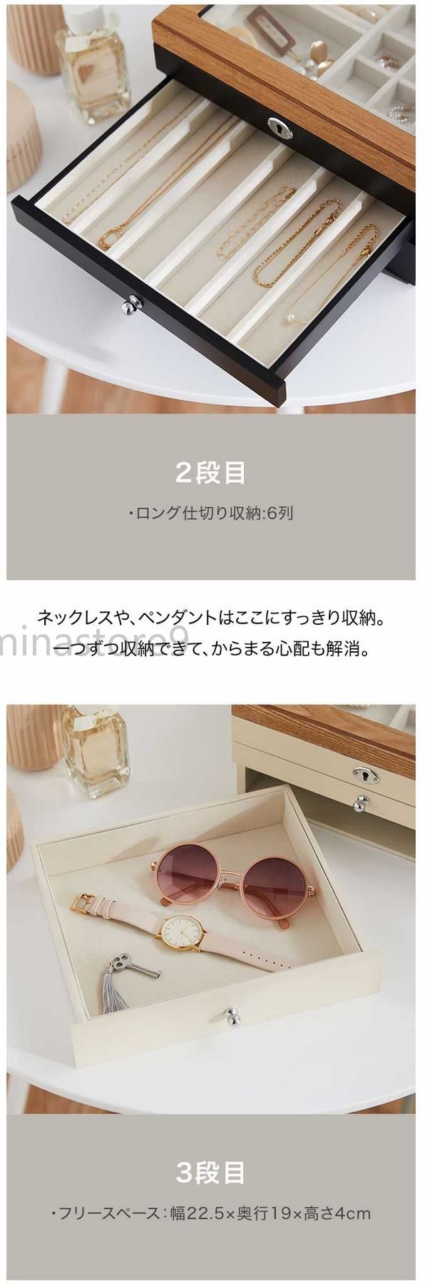 天然木製 引き出し式 3段 収納ボック ジュエリー アクセサリー 早い者勝ち ホワイト ブラック