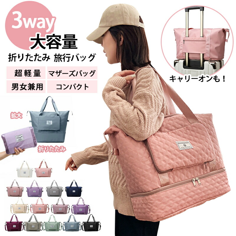 ショルダー付き トートバッグ キルティング 折りたたみ 拡大 旅行バッグ 大容量 超軽量 トラベル お出かけ 自立 コンパクト マザーズバッグ 男女兼用 大きめ ボストンバッグ オシャレ シンプ 軽い