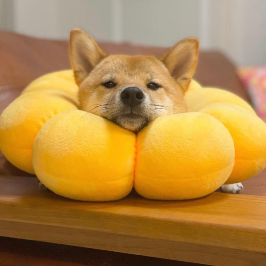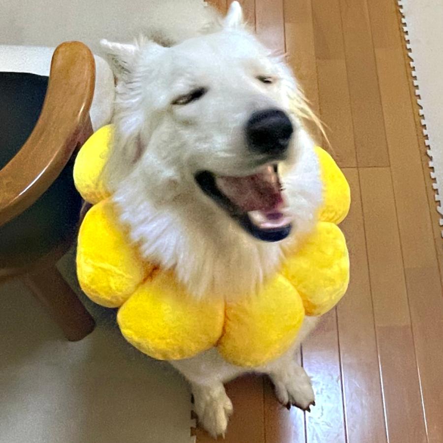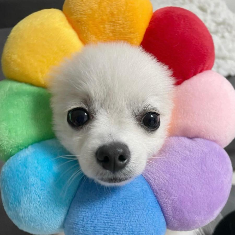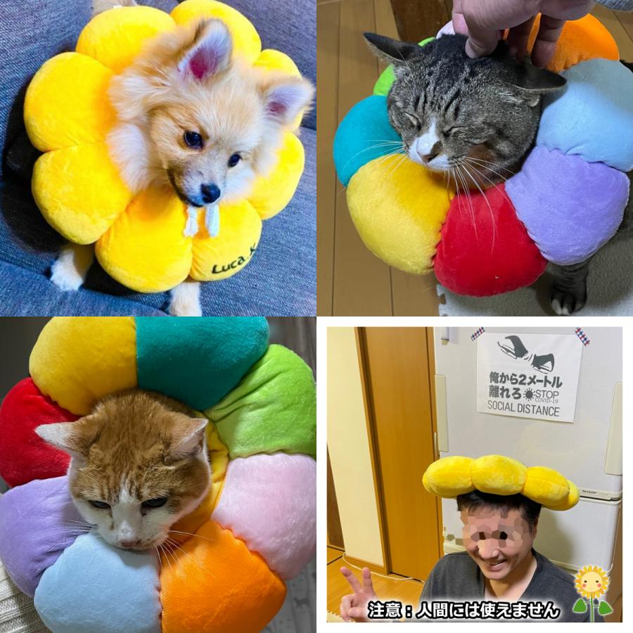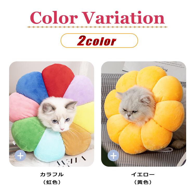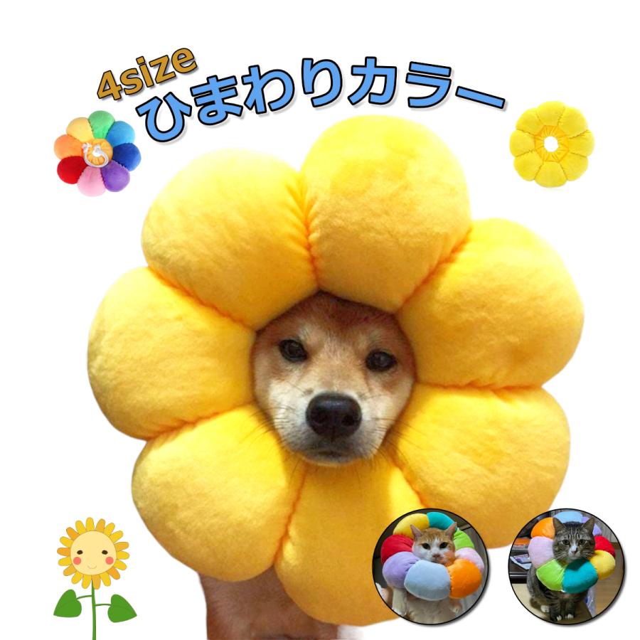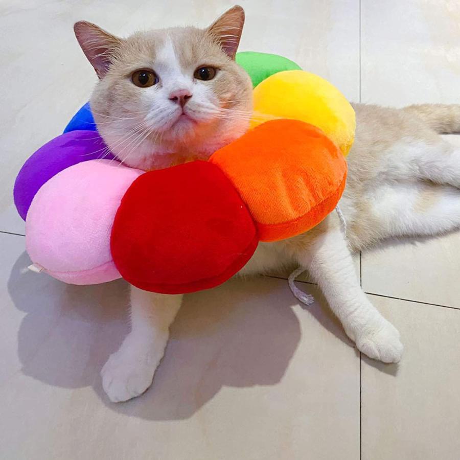 ひまわり型の明るい虹色カラーを着ければペットちゃんはさらに可愛く変身!飼い主さんも笑顔に。傷が治るまでの時間を楽しく過ごせます。
