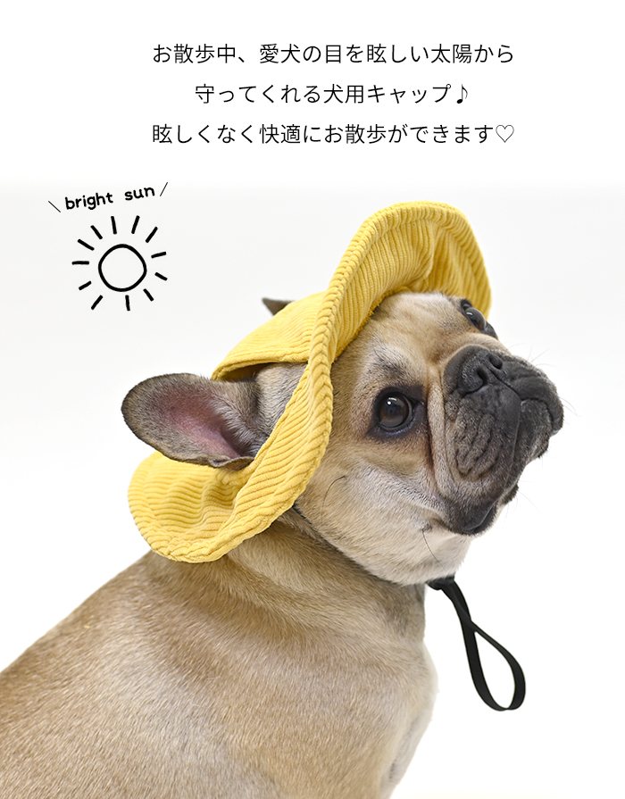 お散歩中、愛犬の目を眩しい太陽から守ってくれる犬用キャップ♪