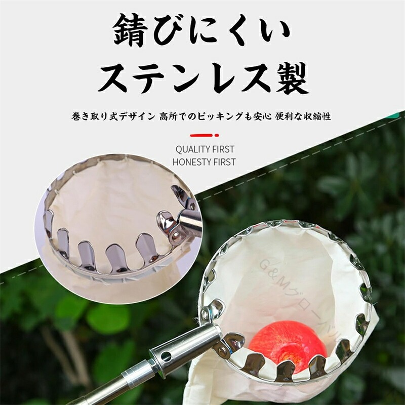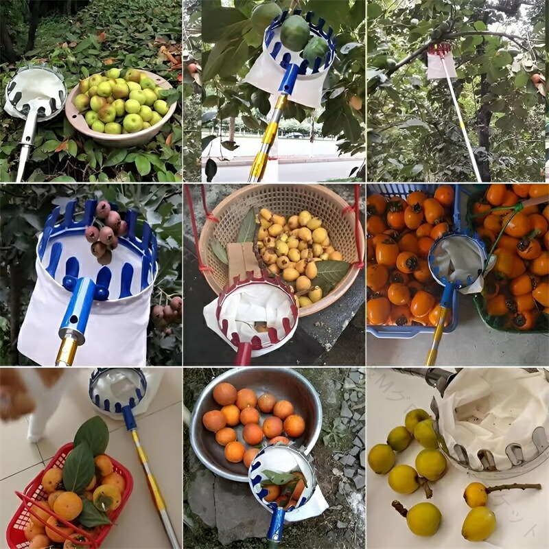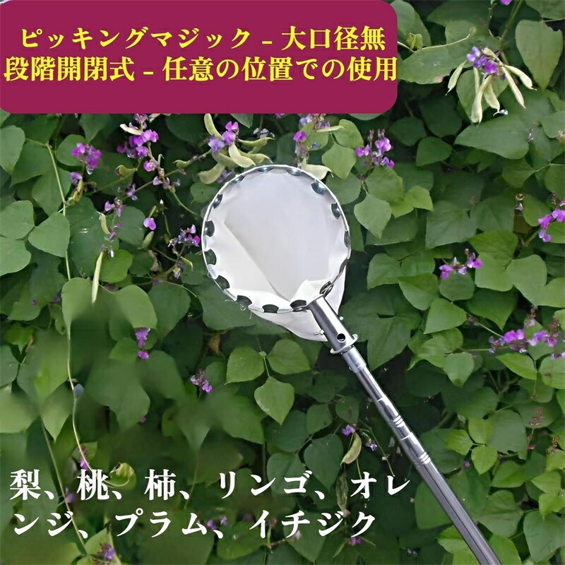 フルーツ収穫 高枝切りばさみ 伸縮式ピッカー 果物取りツール ベリーピッカー 軽量鋏 手動収穫道具 便利園芸用具 果物キャッチャー 果樹用ガーーデニング