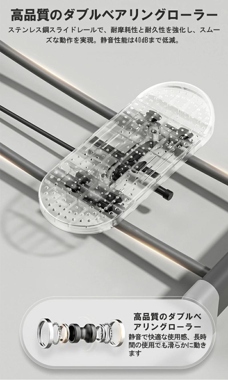 ステンレス製のスライドレールとダブルベアリングホイールで、スムーズで静音性の高い動作を実現。