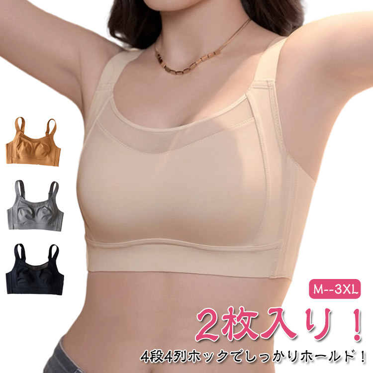 ブラジャー ノンワイヤー 小さく見せる インナー 下着 ナイトウエア 通販 2枚組白 2枚組肌 2枚組ブラウン 2枚組黒 2枚組灰 M L XL 2XL 3XL