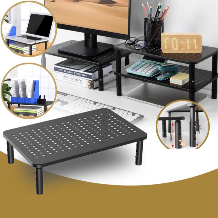 モニター台 パソコン台机上台スチール 机上ラック ディスプレイ台 ノートパソコン台 液晶モニター台 高さ調整可能 卓上収納 スタンド 耐荷重20kg 姿勢改善 文具収納 工具不要 ブ 3段階の高さ調整