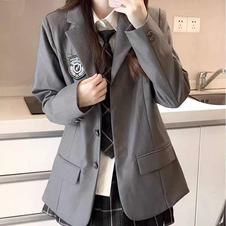 落ち着いた色合いと付きブレザーで、リアルな制服スタイルを再現。