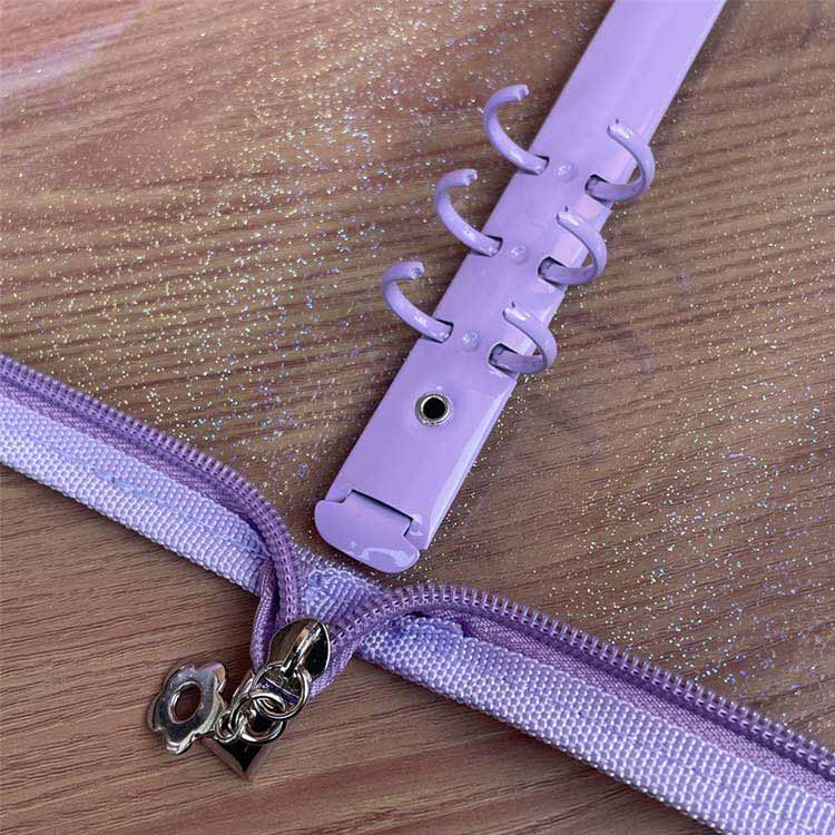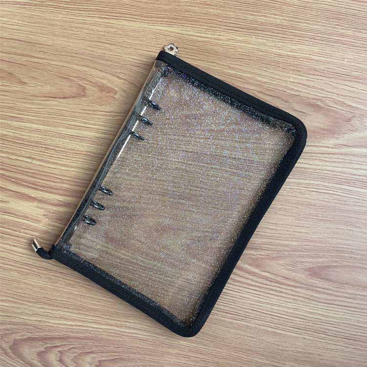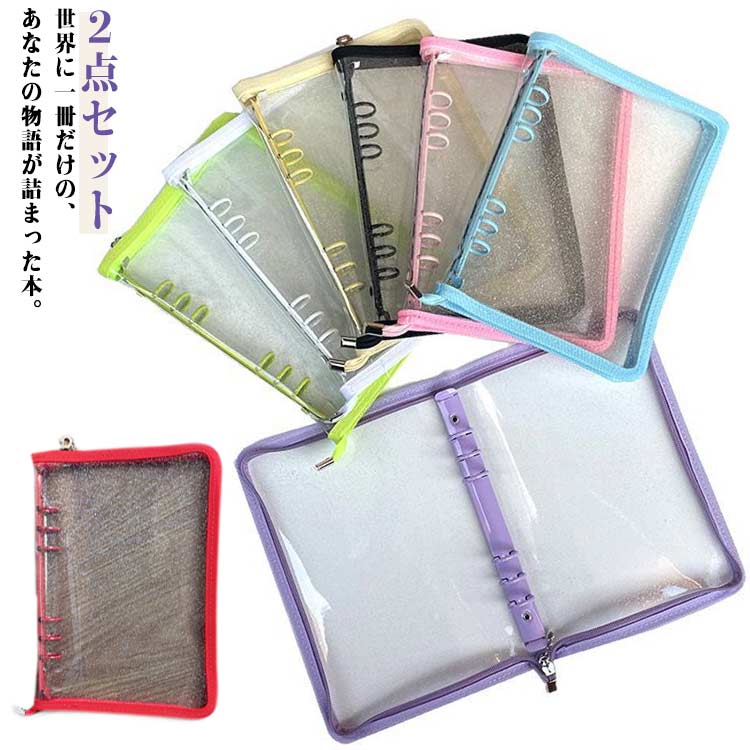 クリアバインダー 透明 ファスナー付き 6穴 2点セット ジッパー手帳 PVC素材 シール帳 持ち運び便利 防水 グリッター ノートカバー 女の子 DIY会議ノートブックフォルダー ミニ システム手帳