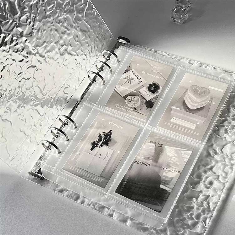 6穴 水波模様ケース 透明 透明シール帳 A5 クリアバインダー ノートカバー システム手帳 女の子 推し活グッズ A5サイズ 手帳 推し活 持ち運び便利 防水シール帳 オト PVC