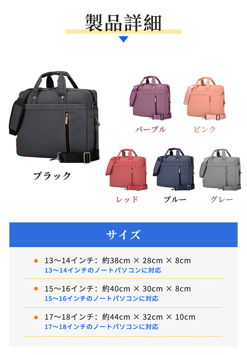 2WAY ノートパソコンバッグ 15. ブラック ブルー グレー パープル レッド ピンク 13/14インチ 15/16インチ 17/18インチ