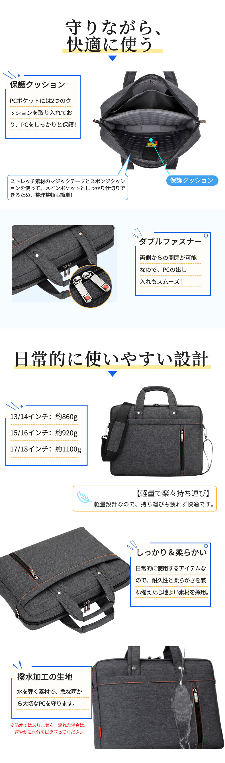 商品名パソコンバッグ ノートパソコンバッグ PCバッグ PCケース パソコンケース PC収納 ビジネスバッグ ショルダーバッグ 手提げ 肩掛け レディース メンズ 軽量 軽い 大容量 撥水 保護 おしゃれ 出張 持ち運び カバン バッグ 2WAY