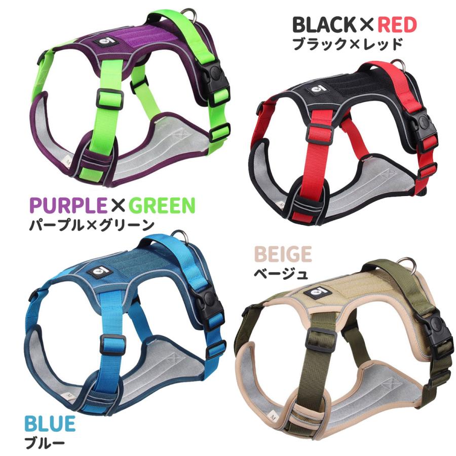 犬 ハーネス おしゃれ 脱げない 簡単 ペット ペットグッズ 新作 ブラック×レッド パープル×グリーン ブルー ベージュ S M L XL