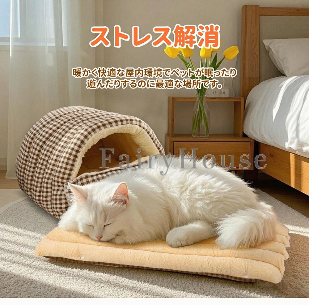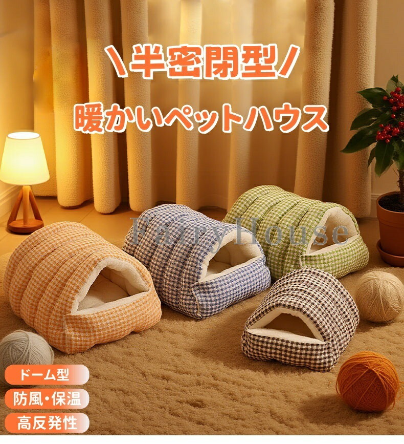 トンネル型 ドームベッド 猫犬兼用 ド 猫用品 ベッド マット 寝具 ベッド 通販 ブルー グリーン オレンジ グレー M:約48*30*20cm L:約65*40*28cm